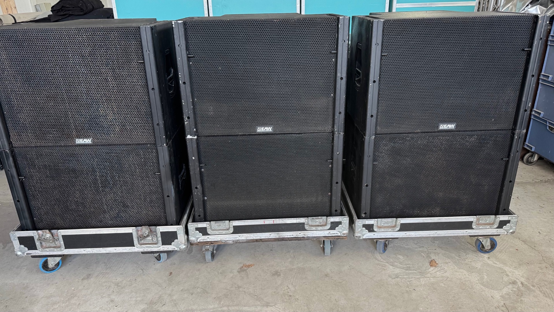 2 x Endstufen Rack inkl. 1x Labgruppen FP7000 1xLabgruppen FP9000 1xFP3400 1x PSA 161Stromsplitter 1 x Schiblade inkl. Cases.