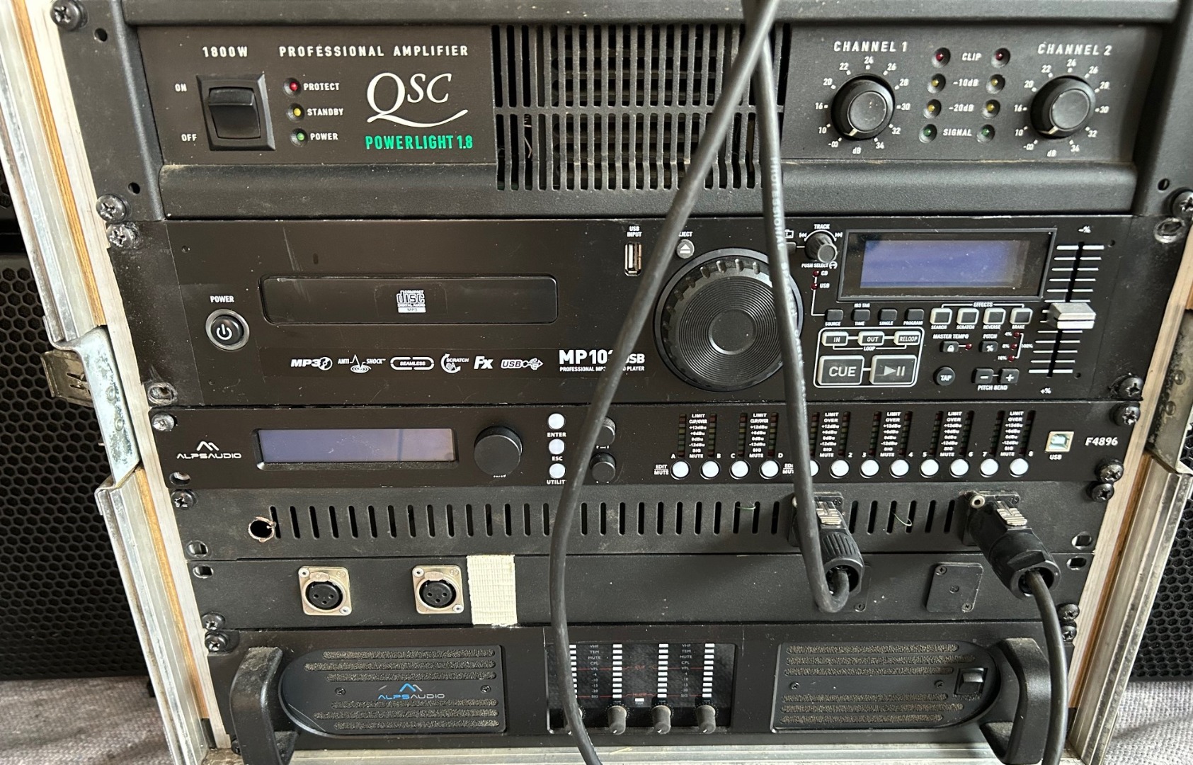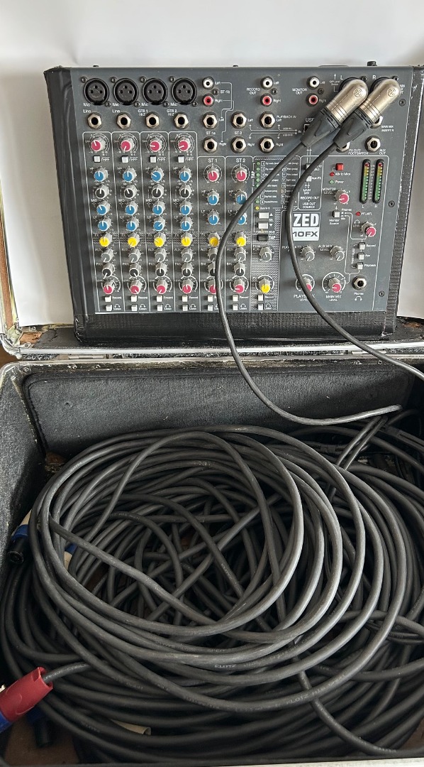 Rack und alle Kabel mit Koffer und Mischpult ZED FX 10
