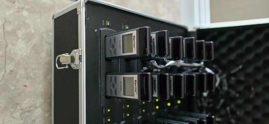 - 128 wireless receivers powered by 3 AAA batteries -akku,