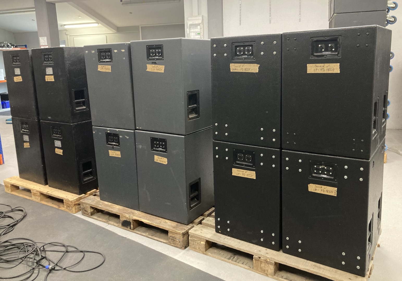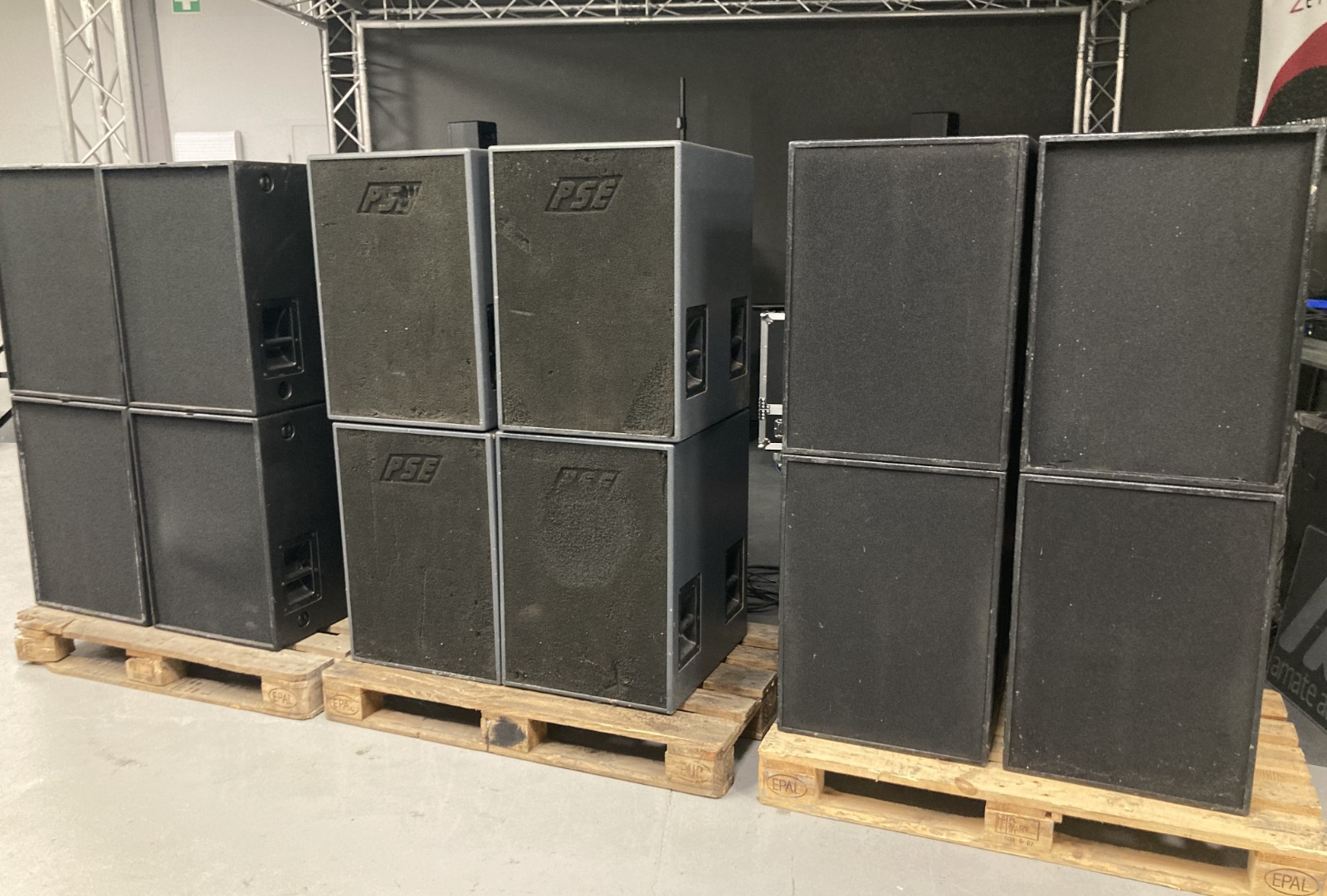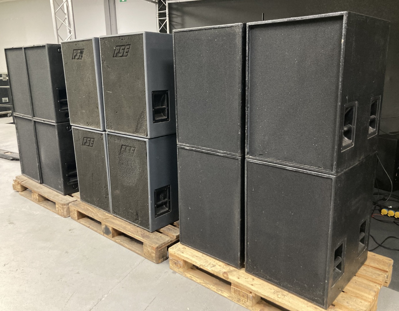 Zum Verkauf kommen bis zu 12x PSE B81 horngeladene Subwoofer. Alle Subs sind geprüft und original bestückt mit dem Precision Device PD1850. 4 Stück haben den original grauen Lack, 8 Stück sind mit schwarzem Strukturlack.