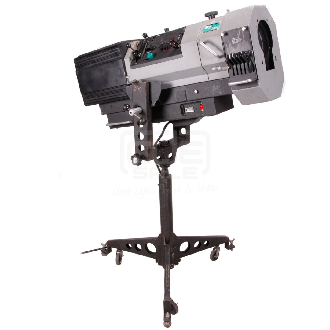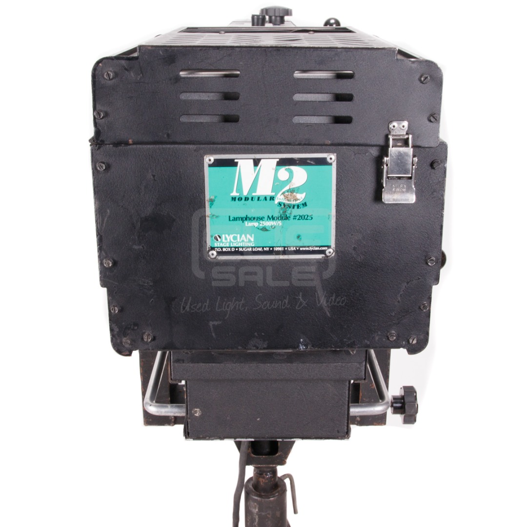 The M2 Followspot System is a collection of modules that, depending on configuration, when assembled will yield follow spotlights capable of wide angle short throw to narrow beam long throw units. The modules consist of Main Chassis, Gate, 1200 watt Lamp House, 2500 watt Lamp House, Short, Medium and Long throw Lenses, Yoke and Base Assemblies, and Magnetic and flicker-free Electronic Power Supplies.