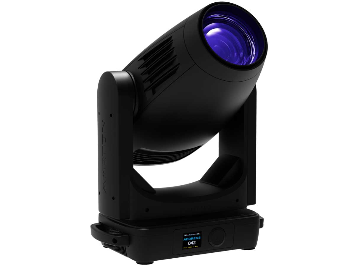 Ayrton Khamsin-S LED spot moving light with power cable and quarter turn mount in flight case.