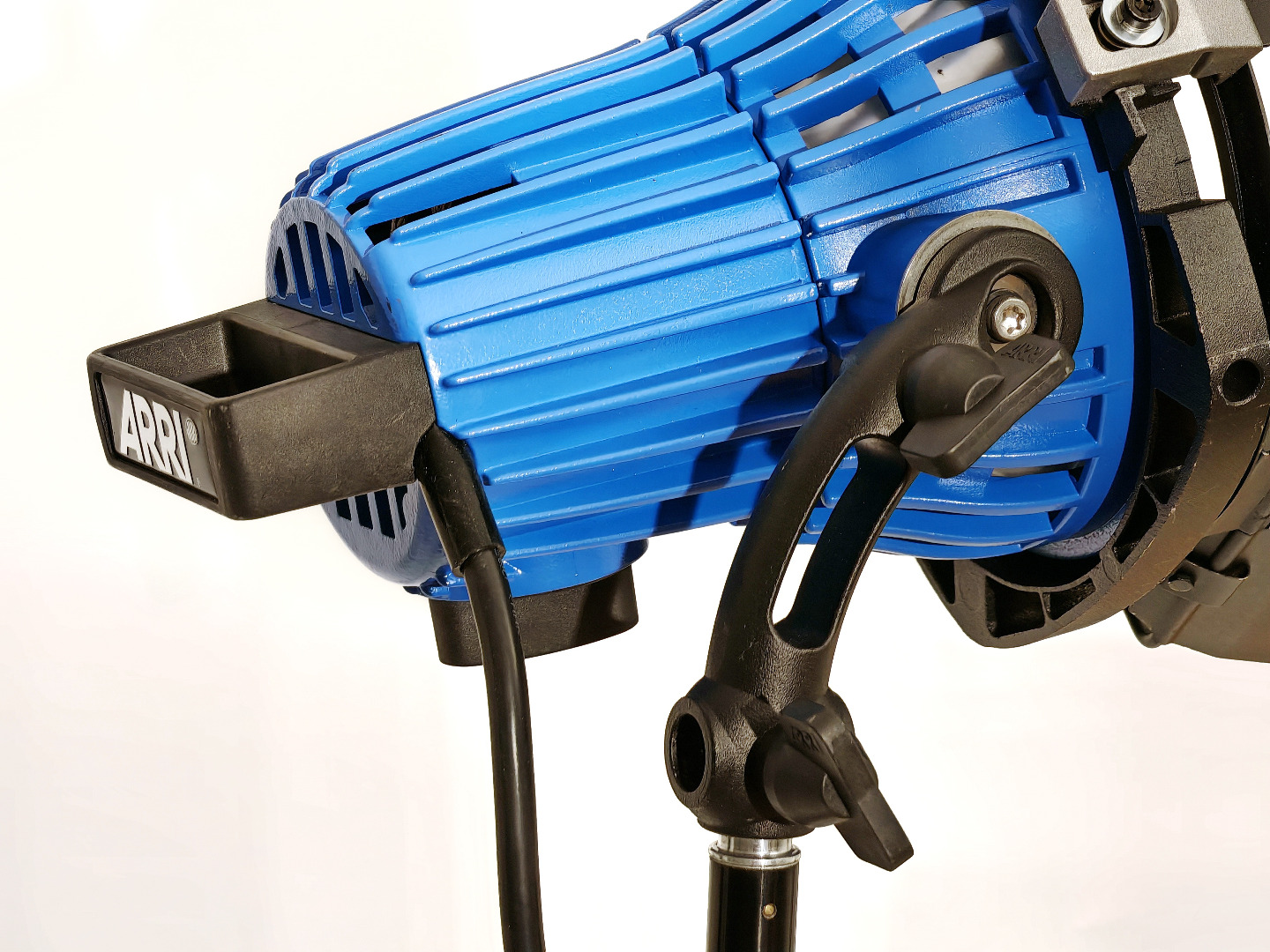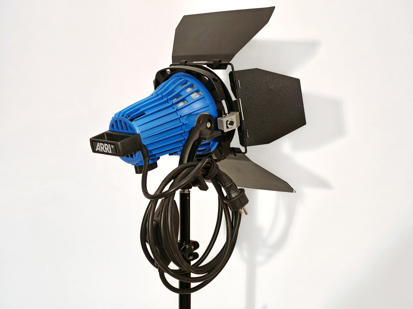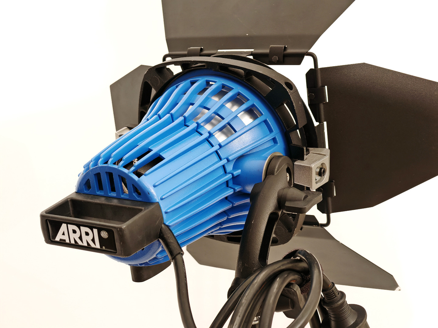 Der Vorteil der Leuchten gegenüber LED-Beleuchtung liegt in der hohen Lichtausbeute, der sehr gleichmäßigen (fokussierbaren) Ausleuchtung, einer absolut konstanten Farbtemperatur (anpassbar durch Folien), Color Rendering Index (CRI) von 100 Prozent. Die Nachteile sind die Notwendigkeit von 220V Netzstrom und die Wärmeentwicklung bei Betrieb. Die Arrilight arbeiten lüfterlos und absolut geräuschlos (kein Knacken beim Aufheizen oder Abkühlen) und absolut zuverlässig. Es handelt sich um die Version mit Schukostecker und Schalter. Die seitliche Stativaufnahme lässt eine sehr einfache Einstellung der Lampen, ob auf dem Stativ oder hängend im Studio, zu. Bei dem Lampentyp lässt sich derv Brenner einfach und ohne Werkzeug wechseln, ohne die Lampe aus der Aufhängung zu nehmen.