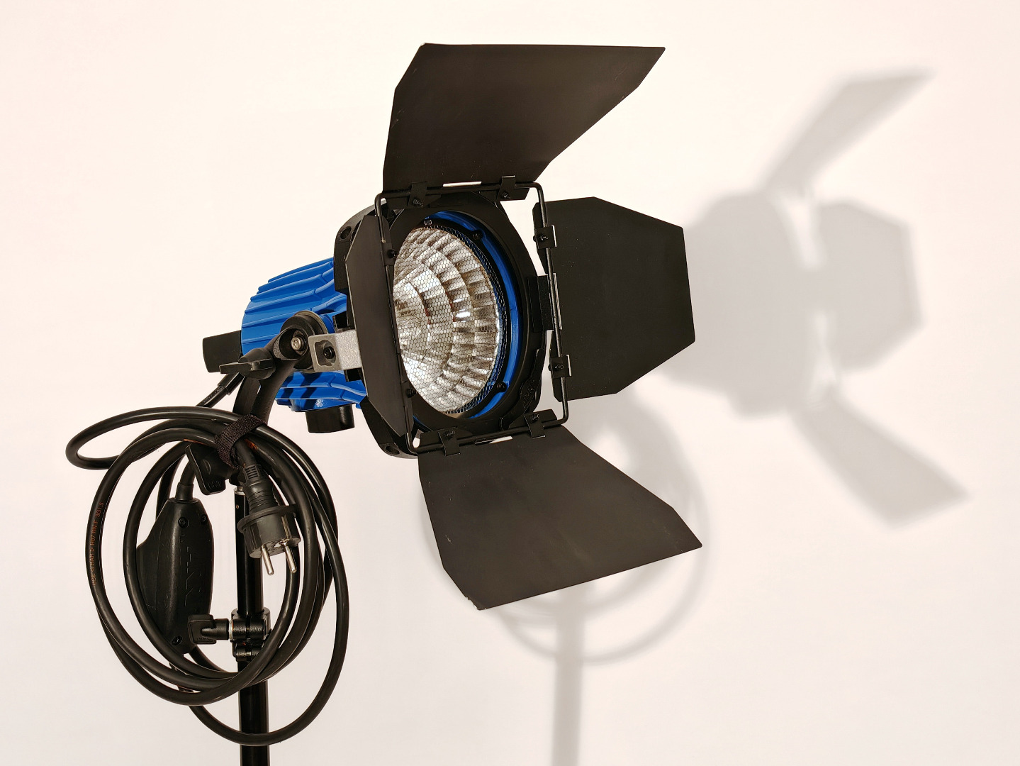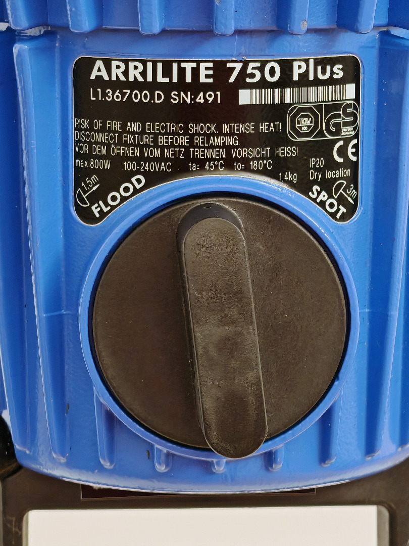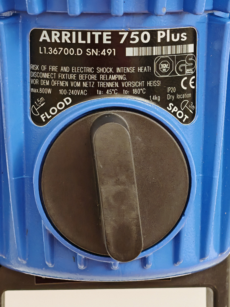 Der Vorteil der Leuchten gegenüber LED-Beleuchtung liegt in der hohen Lichtausbeute, der sehr gleichmäßigen (fokussierbaren) Ausleuchtung, einer absolut konstanten Farbtemperatur (anpassbar durch Folien), Color Rendering Index (CRI) von 100 Prozent. Die Nachteile sind die Notwendigkeit von 220V Netzstrom und die Wärmeentwicklung bei Betrieb. Die Arrilight arbeiten lüfterlos und absolut geräuschlos (kein Knacken beim Aufheizen oder Abkühlen) und absolut zuverlässig. Es handelt sich um die Version mit Schukostecker und Schalter. Die seitliche Stativaufnahme lässt eine sehr einfache Einstellung der Lampen, ob auf dem Stativ oder hängend im Studio, zu. Bei dem Lampentyp lässt sich derv Brenner einfach und ohne Werkzeug wechseln, ohne die Lampe aus der Aufhängung zu nehmen.