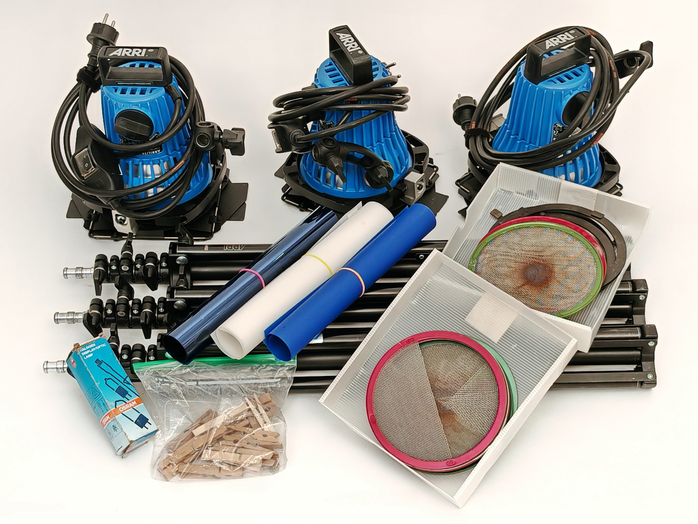 Die Lampen sind technisch einwandfrei und gerade gecheckt. Auch optisch sind die Lampen und Stative ohne größere Gebrauchsspuren - halt ARRI-Qualität.