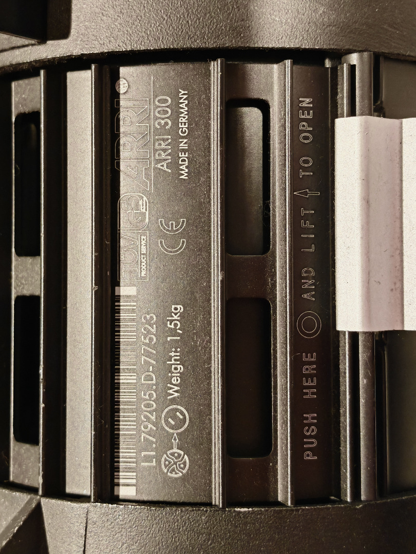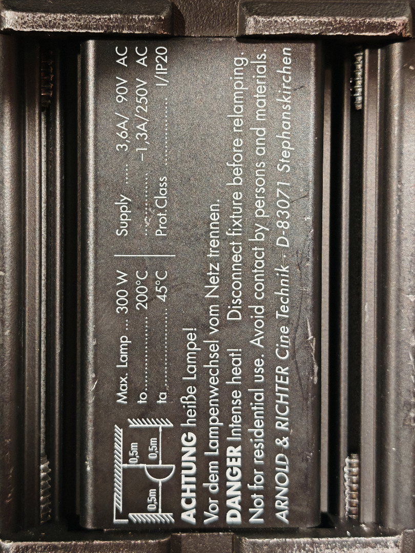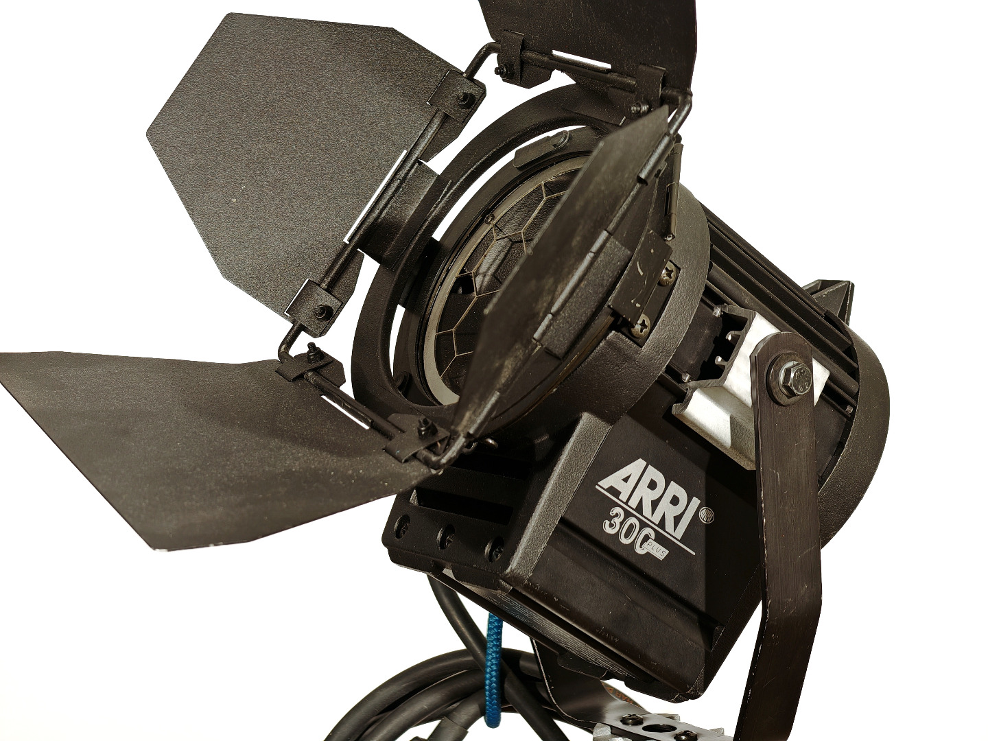 Angeboten wird ein professioneller Scheinwerfer für Film/Video/Foto/Studio/Bühne/Messe des Deutschen Edelherstellers ARRI. Geeignet ist der kleine Stufenlinsen-Scheinwerfer mit 300 Watt Halogenlicht (konstante Farbtemperatur von 3200 K) für kleinere Settings oder Studios, Interviewausleuchtung, Kleinkunstbühnen. Kein Flackern, kein Pulsen, wie oft bei LED-Licht. Ein CRI-Wert (Colour Rendering Index) von 100 für perfekte Farbwiedergabe.