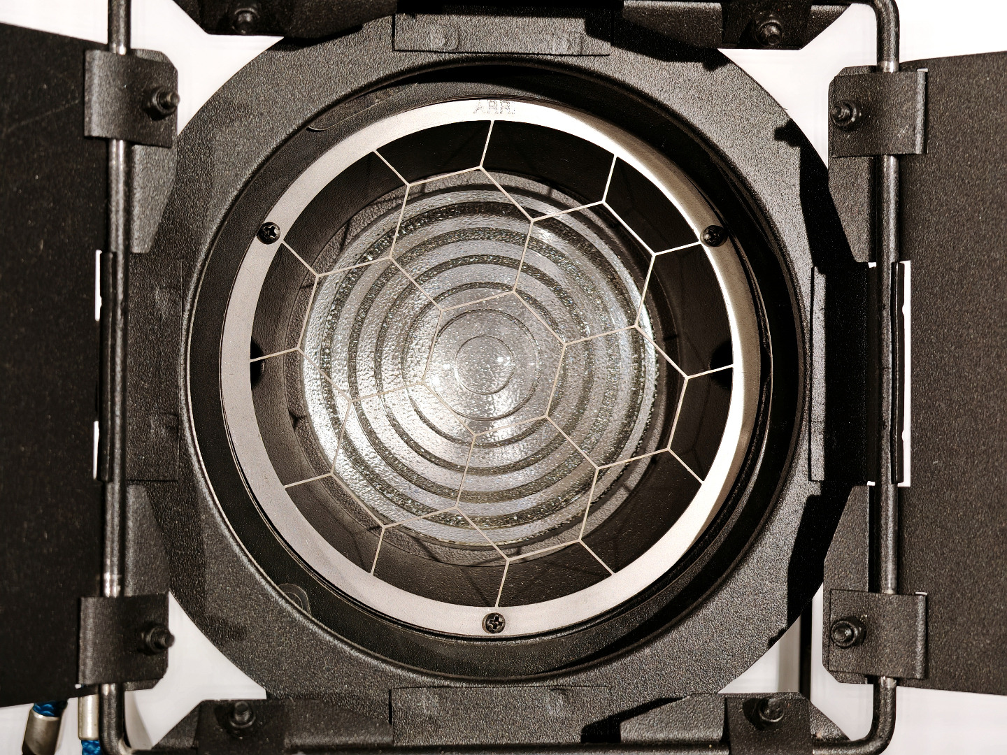 Der Scheinwerfer wird mit Filterrahmen und Torblende geliefert. Ohne das abgebildete Stativ.