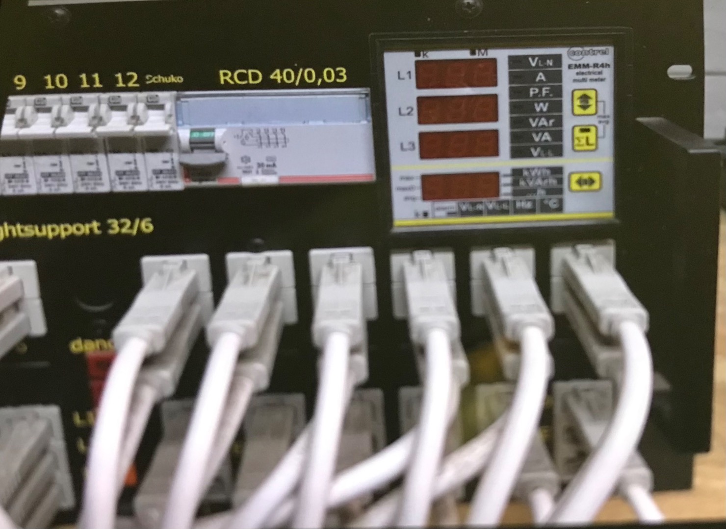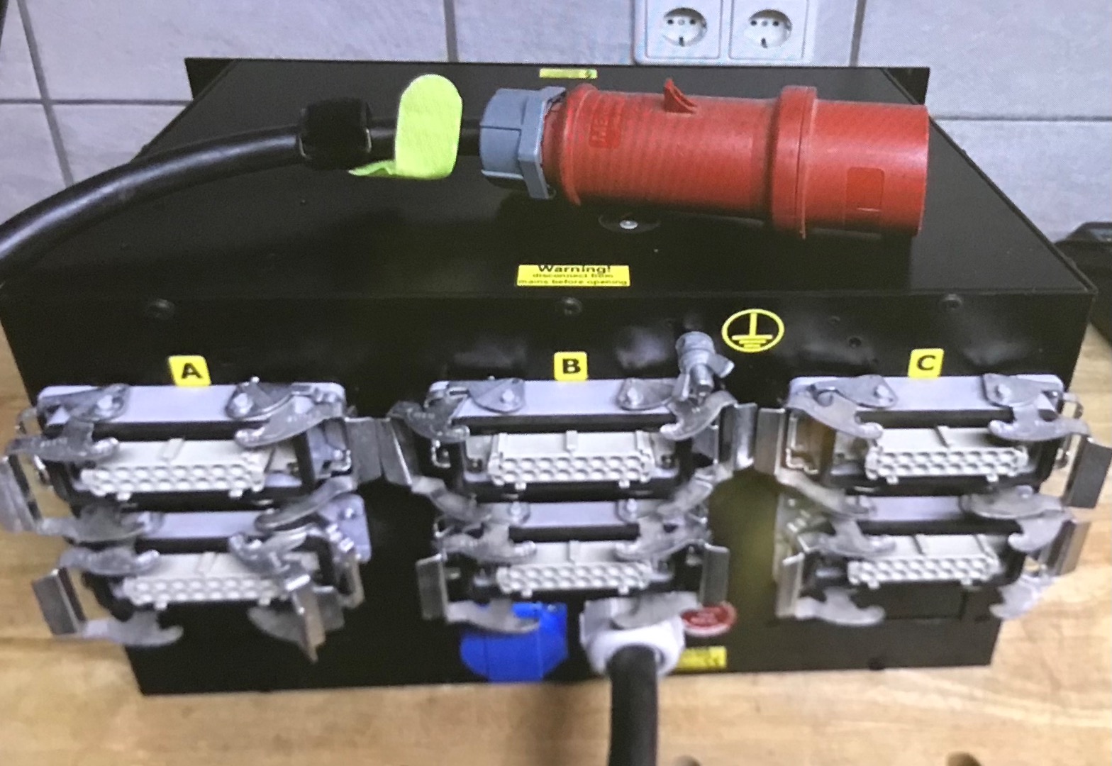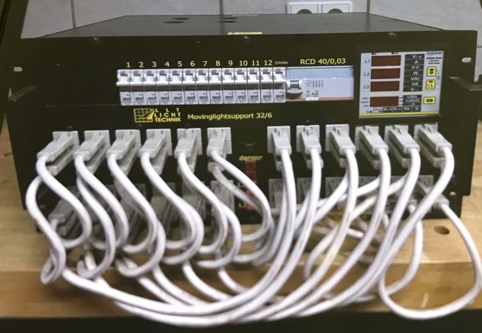 Biete hier einen LLT Lichttechnik Movinglightsupport 32/6 Stromverteiler (Komplett-Rackeinsatz 19“) in gutem technisch einwandfreien Zustand. Gerät ist einige Jahre alt, wurde jedoch damals neu ins Rack gebaut und seitdem nur darin transportiert. Eingang über CEE 32A Stecker mit Kabel und Ausgänge 6x HAN16 bzw. 2x Schuko. Alles separat abgesichert sowie über das Patchfeld entsprechend anpassbar. Ebenfalls eingebaut ein Multifunktionsmessgerät, welches sehr hochwertig und umfangreich ist. Der damalige NP. war über 2.400.- EUR !