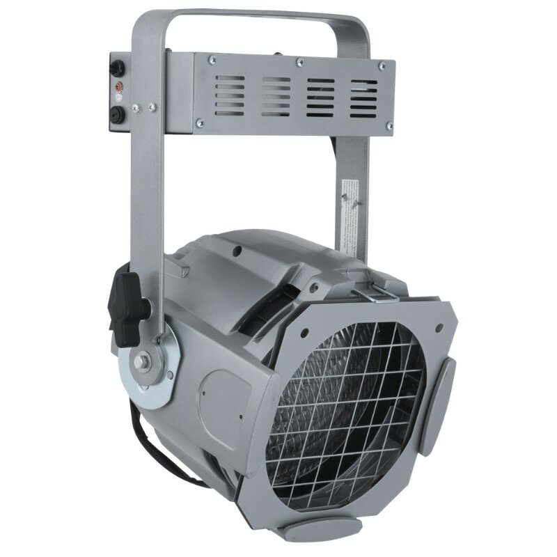 The Showtec Studio Beam CDM/HCI-150 is a compact spotlight with a ballast and a G12 socket for lamps up to 150 watts, suitable for indoor locations. It comes with four different lenses, a filter frame, and a 1-meter power cord. A barn door is optional for manually shaping its output.