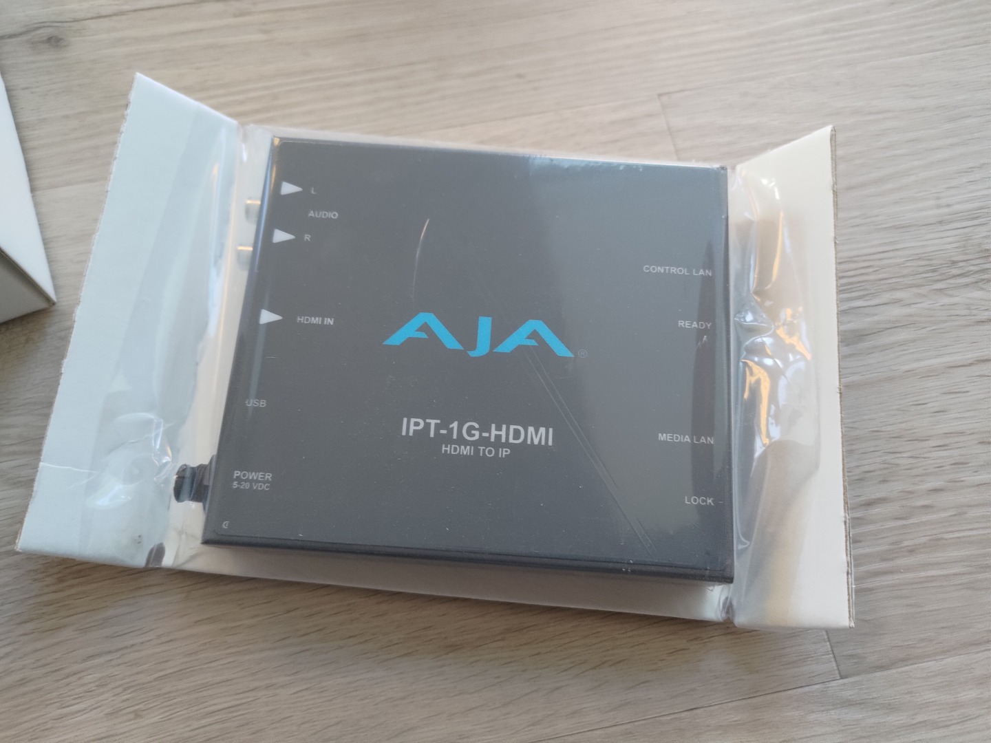 Zum Verkauf steht hier ein AJA IPT-1G-HDMI JPEG 2000 IP Video/Audio Konverter in sehr gutem Zustand, wie auf den Fotos zu sehen. Es handelt sich hierbei um B-Ware mit 12 Monaten Gewährleistung. Unter B-Ware verstehen wir Versandrückläufer, Demoware, Ware aus Vorabersatz oder Garantieaustausch.