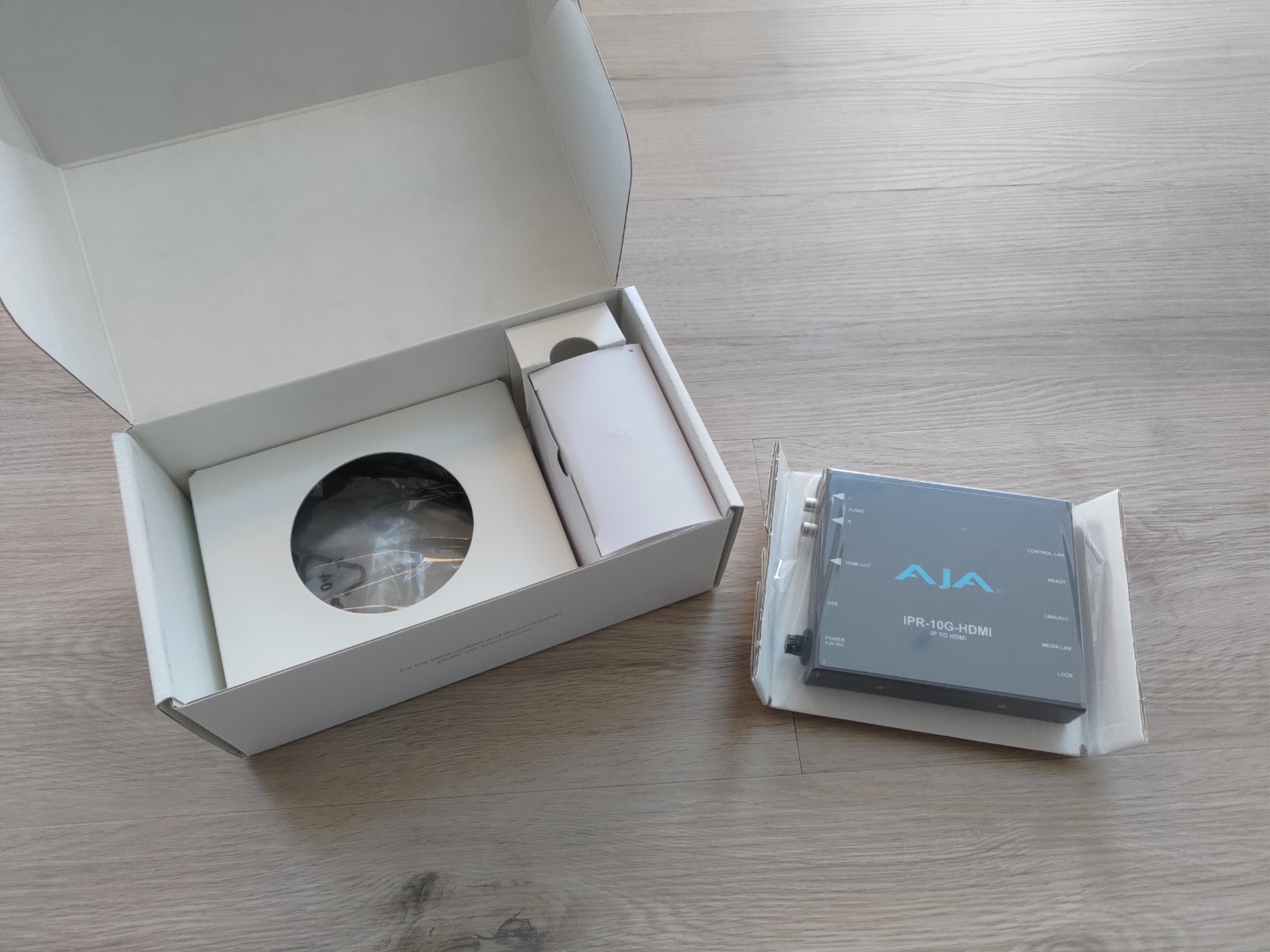 Zum Verkauf steht hier ein AJA IPT-10G-HDMI IP Video/Audio Konverter in sehr gutem Zustand, wie auf den Fotos zu sehen. Es handelt sich hierbei um B-Ware mit 12 Monaten Gewährleistung. Unter B-Ware verstehen wir Versandrückläufer, Demoware, Ware aus Vorabersatz oder Garantieaustausch.