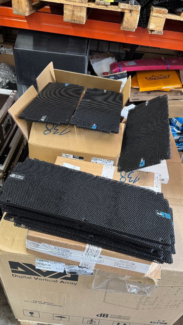 Wir verkaufen 12x Frontgitter mit Logos und Schaum für dBTechnologies DVA T8 in gutem gebrauchten Zustand, siehe Fotos.
