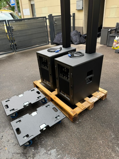 Robustes Subwoofer-Gehäuse aus Birken-Multiplex mit Polyurea-Beschichtung und leichte, pulverbeschichtete Aluminiumsäule