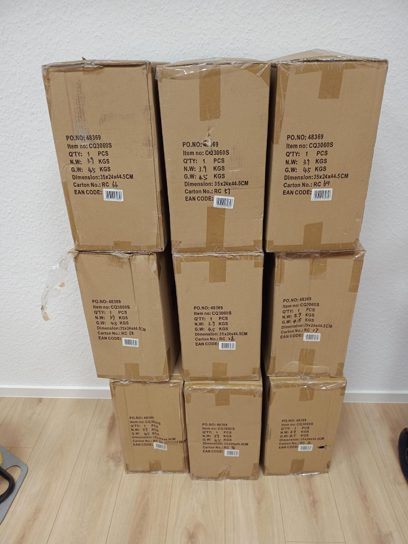 Wie in den Bildern zu sehen, sind die Kabeltrommeln noch originalverpackt und ungenutzt. Lediglich der Außenkarton wurde in einigen Fällen geöffnet und kann leicht beschädigt sein.
