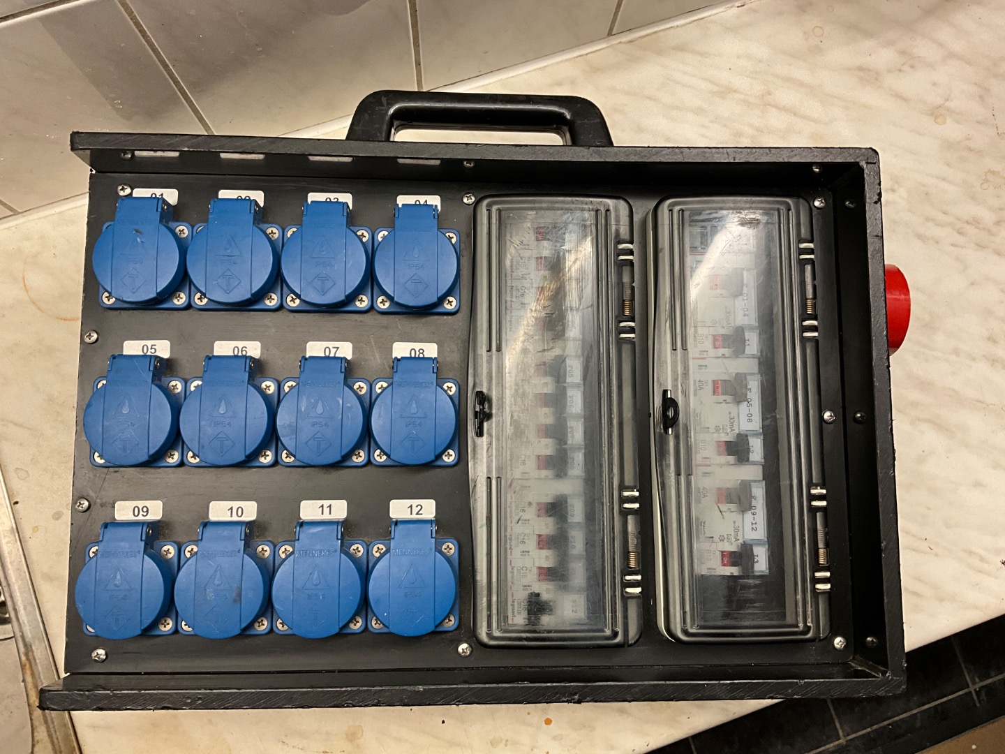 Verkaufe einen Stromverteiler CEE 32A auf 12 Schuko. Die drei Phasen sind einzeln schaltbar und hat ein FI Schutzschalter aller vier Schuko. Ein Anschluß für „Erde“ ist auch vorhanden.