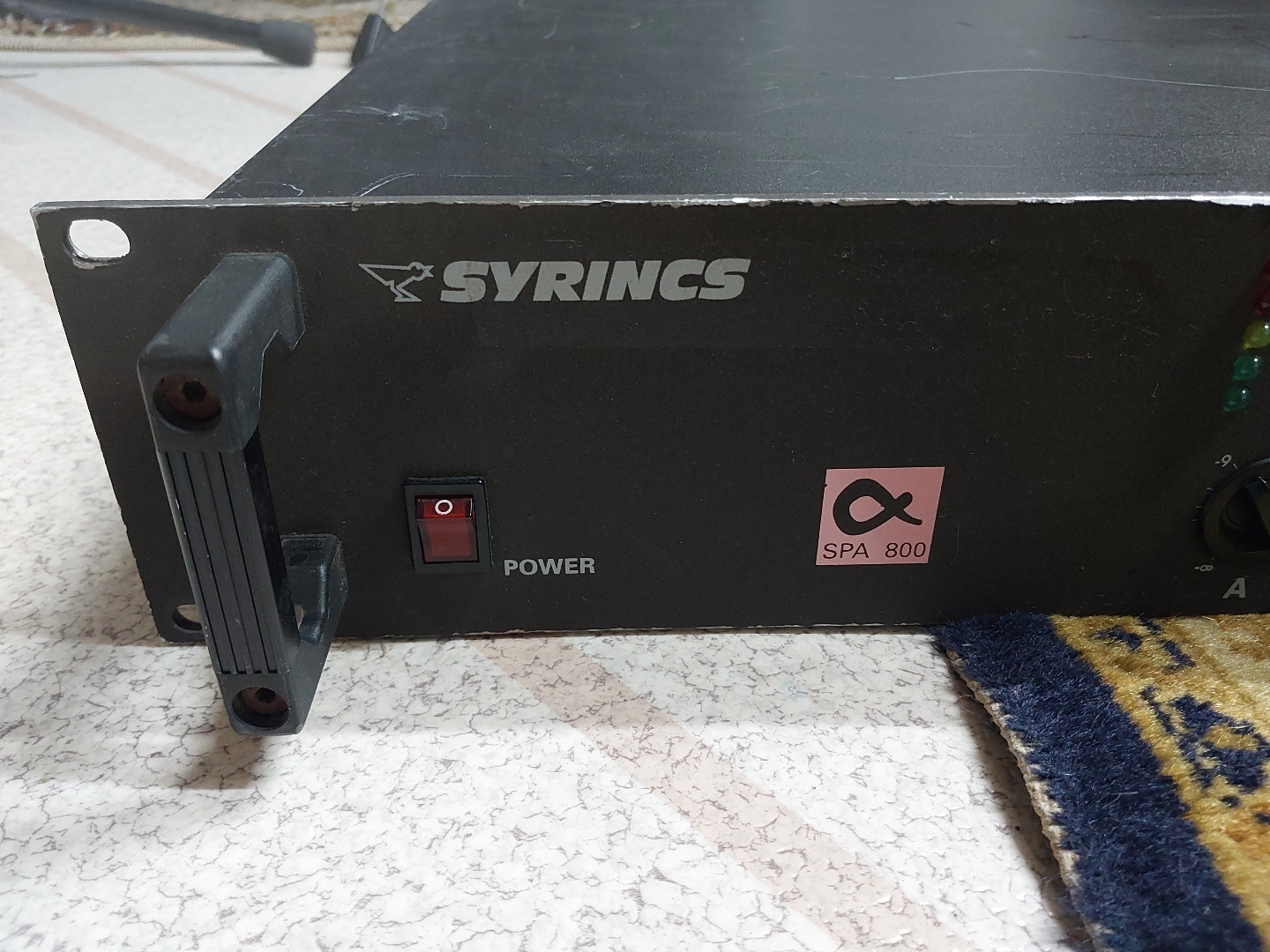 Syrincs Verstärker SPA 800 gebraucht mit Gebrauchsspuren und Verbiegungen am Heck sowie zu ersetzendem Netzkabel - deswegen als defekt eingestellt, ansonsten voll funktionstüchtig.