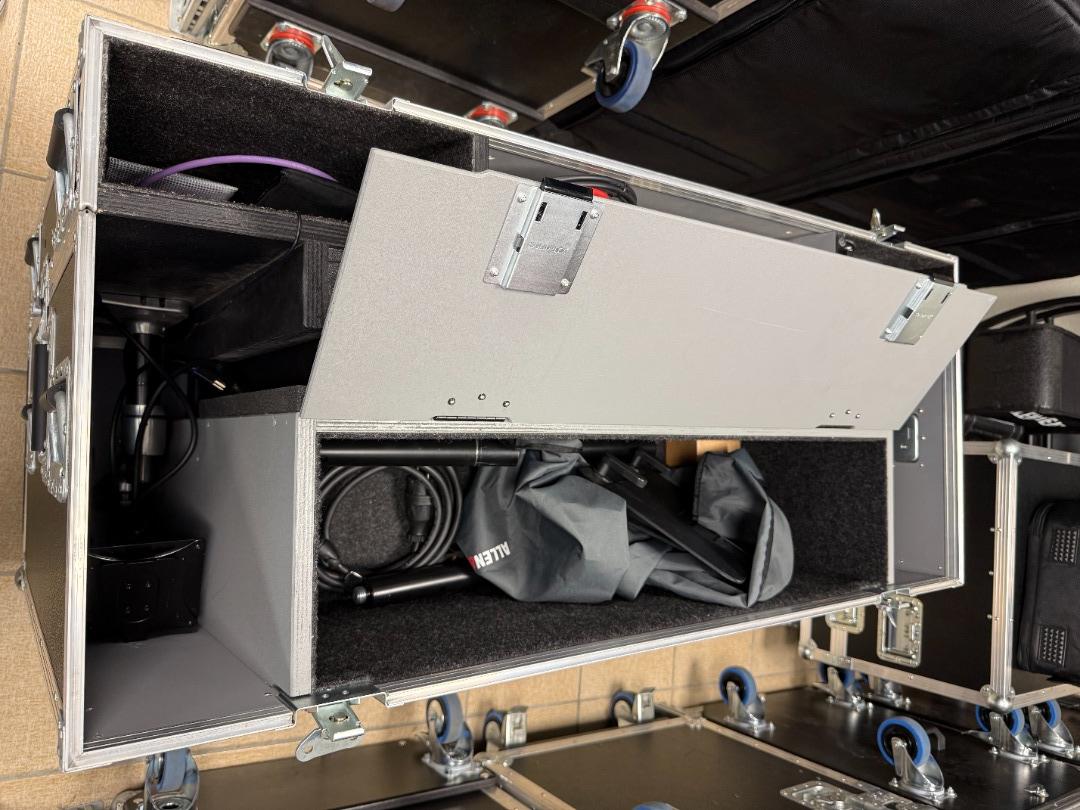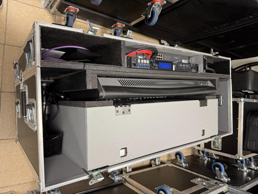 1x Procase Customcase (mit Halterungen für zwei Ergotron Monitorarme, Halterungen für zwei Abhörmonitore und 2HE Einbaumöglichkeit unterhalb des Pultes)