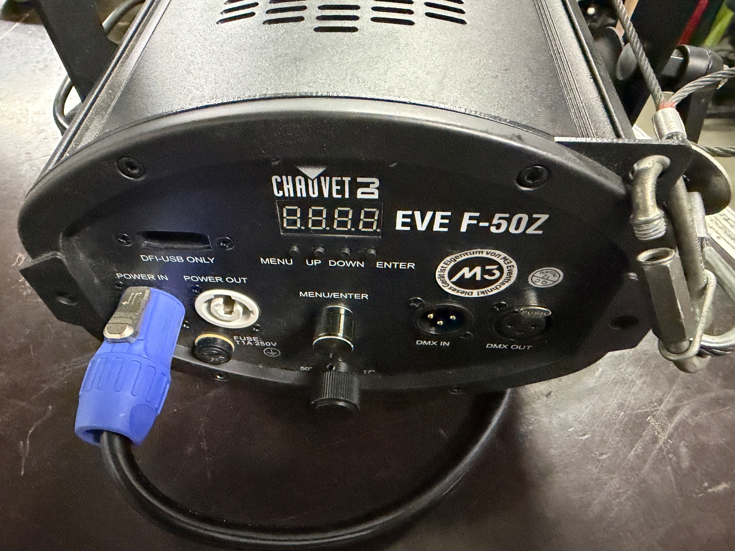 6 Stk. Chauvet DJ EVE F-50Z LED Linsenscheinwerfer im 6er Case inkl. Haken und Safekings