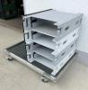 Flightcase mit 4 x 3HE Innenracks (Einbautiefe =58cm) weiteren Platz für 4 x 3HE Racks oder andere Größen. Abmasse: L=118 x B=78 x H=95cm mit 12 x Klappgriffe, und 4 x HD Rollen.