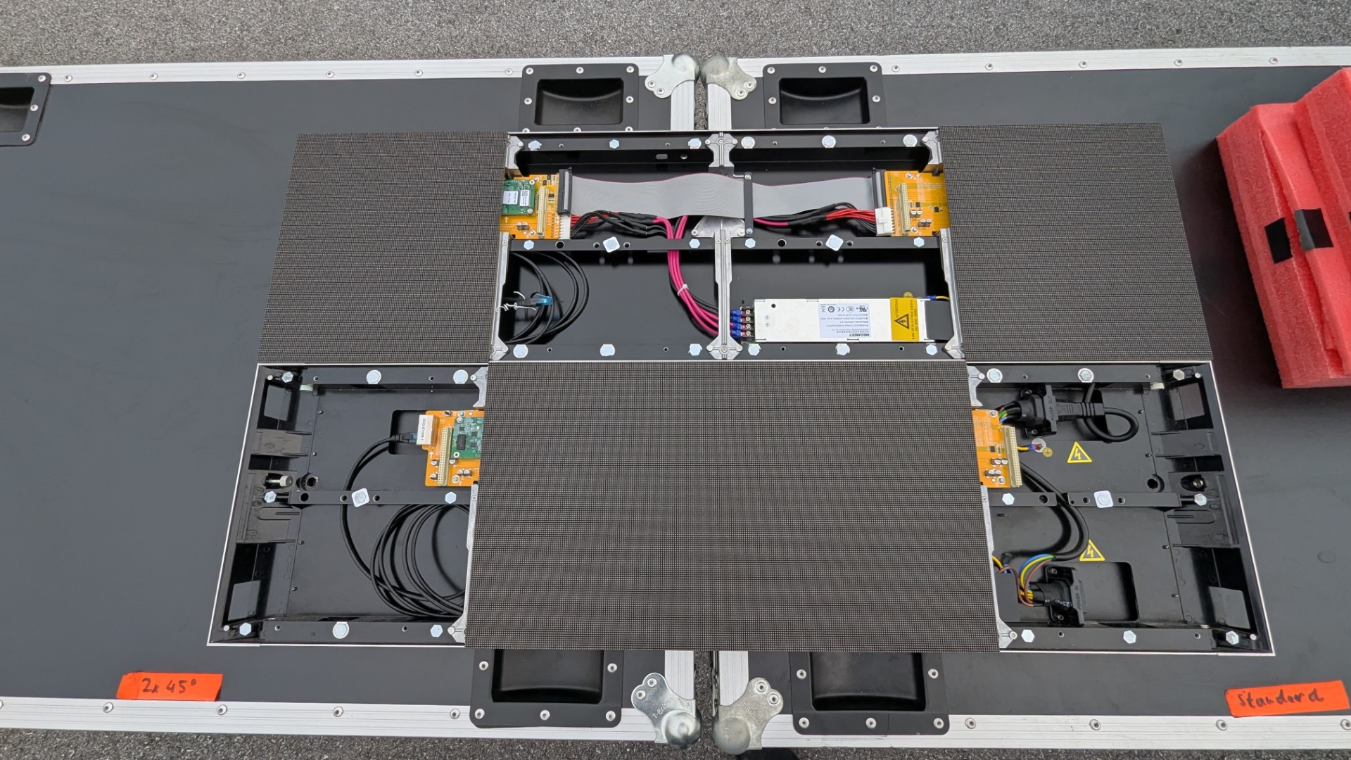 1.9 mm LED-Wand für Indoor-Installationen - ideal für Messestände, etc. Die Gehäuse können einfach auf eine Holzwand oä geschraubt werden, die LED-Module haben Magnete zur Befestigung und werden von vorne in die Gehäuse geschnappt. Zum sicheren Transport sind die Module extra in Schaumstoff gepackt (2 Module pro Schaumstoff, 9 Schaumstoffeinheiten pro Eurobox).