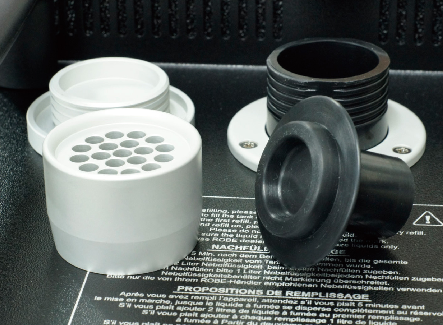 Metal net and filter in the intake hole can prevent hazers from clogging problems. The metal net and filter are serviceable which means those can be detached easily and cleaned by water.
