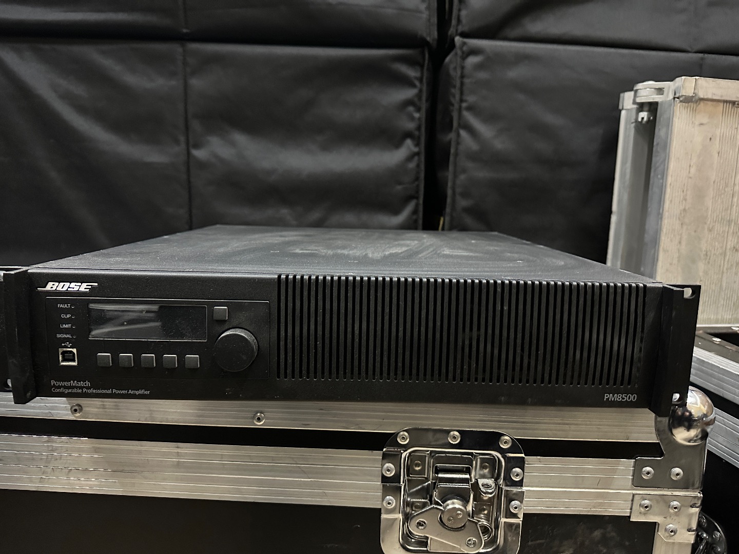 The Bose® PowerMatch PM8500 configurable professional power amplifier provides concert-quality sound with a high level of scalability and configurability. The PM8500 offers multiple channel and power options, an integrated audio DSP, front panel interface and USB connection. Ethernetequipped versions enable network configuration, control and monitoring. An expansion slot supports inputs from optional digital accessory cards. PowerMatch amplifiers utilize numerous Bose technologies to deliver an unprecedented combination of performance, efficiency and ease of installation—all in a reliable, proprietary design. Available in two versions, the PM8500 provides USB connection for single-unit setup and control using Bose ControlSpace® V3.0 or higher software.