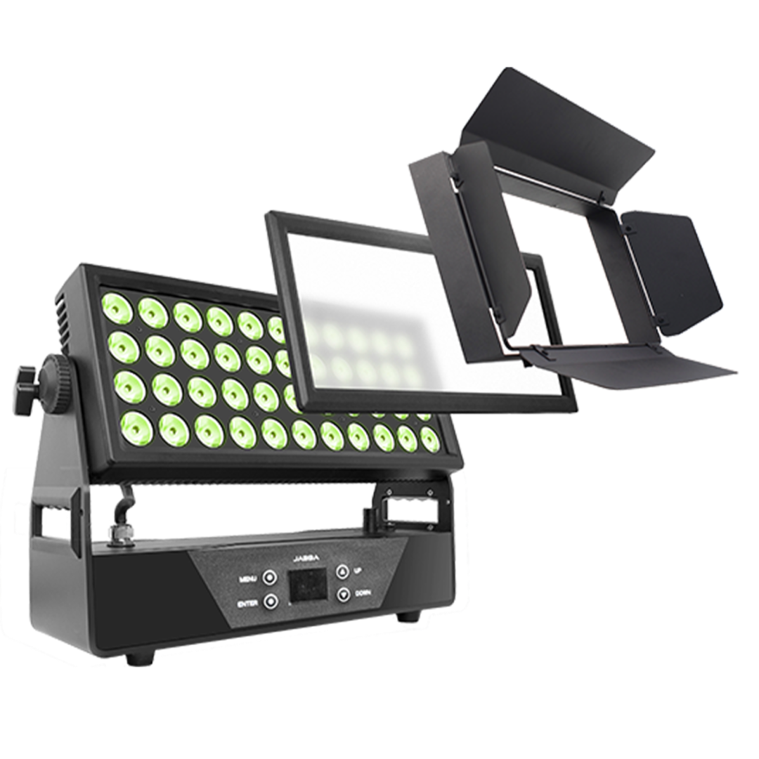 Der JABBA ist ein leistungsstarker LED-Strahler mit 44 x 20W RGBW-LEDs und präziser Mischoptik, die für brillante Farben und eine gleichmäßige Ausleuchtung sorgt. Das 15°-Linsensystem erzeugt ein homogenes Lichtbild ohne Farbschatten, während der Kopf um ±120° schwenkbar bleibt. Mit einer realen LED-Leistung von 800W und einer Stromaufnahme von nur 4,1A bei 220V bietet der JABBA starke Performance bei hoher Effizienz. Zwei praktische Griffschalen erleichtern den Transport, und mit nur 15 kg ist das Gerät besonders handlich. Der JABBA arbeitet im Stand-Alone-, Master/Slave-, DMX- und W-DMX-Betrieb und kann zusätzlich als W-DMX-Empfänger dienen. Zum Lieferumfang gehören eine 15° Mischoptik, magnetische Filterrahmen (40° und 60°x10°) sowie eine 4-Flügel-Torblende mit Schnellverschluss – alles für maximale Flexibilität im Einsatz.