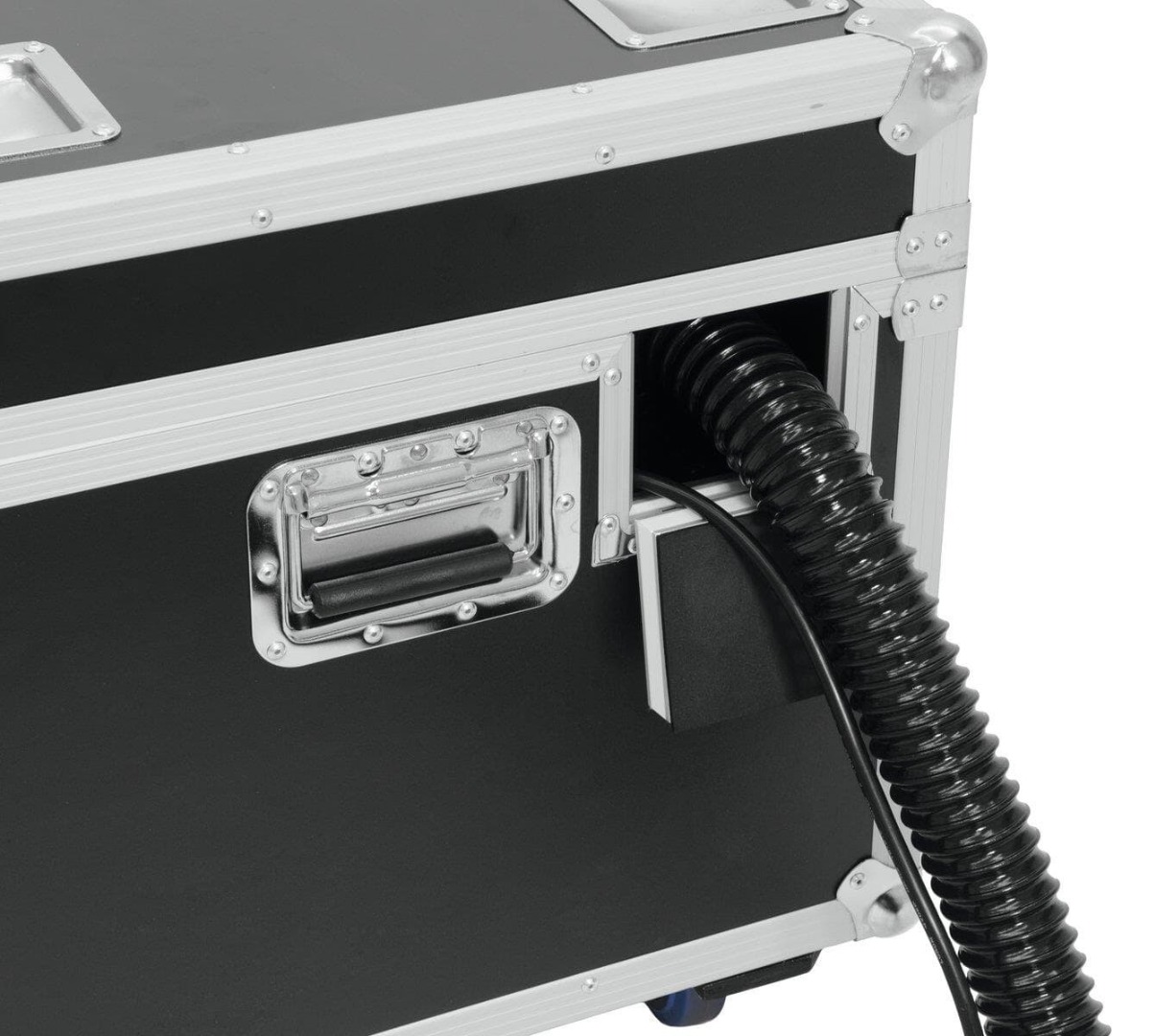 * Das Flightcase hat eine kleine Zugangsklappe für den Luftschlauch, so dass es für leisen Betrieb geschlossen werden kann.