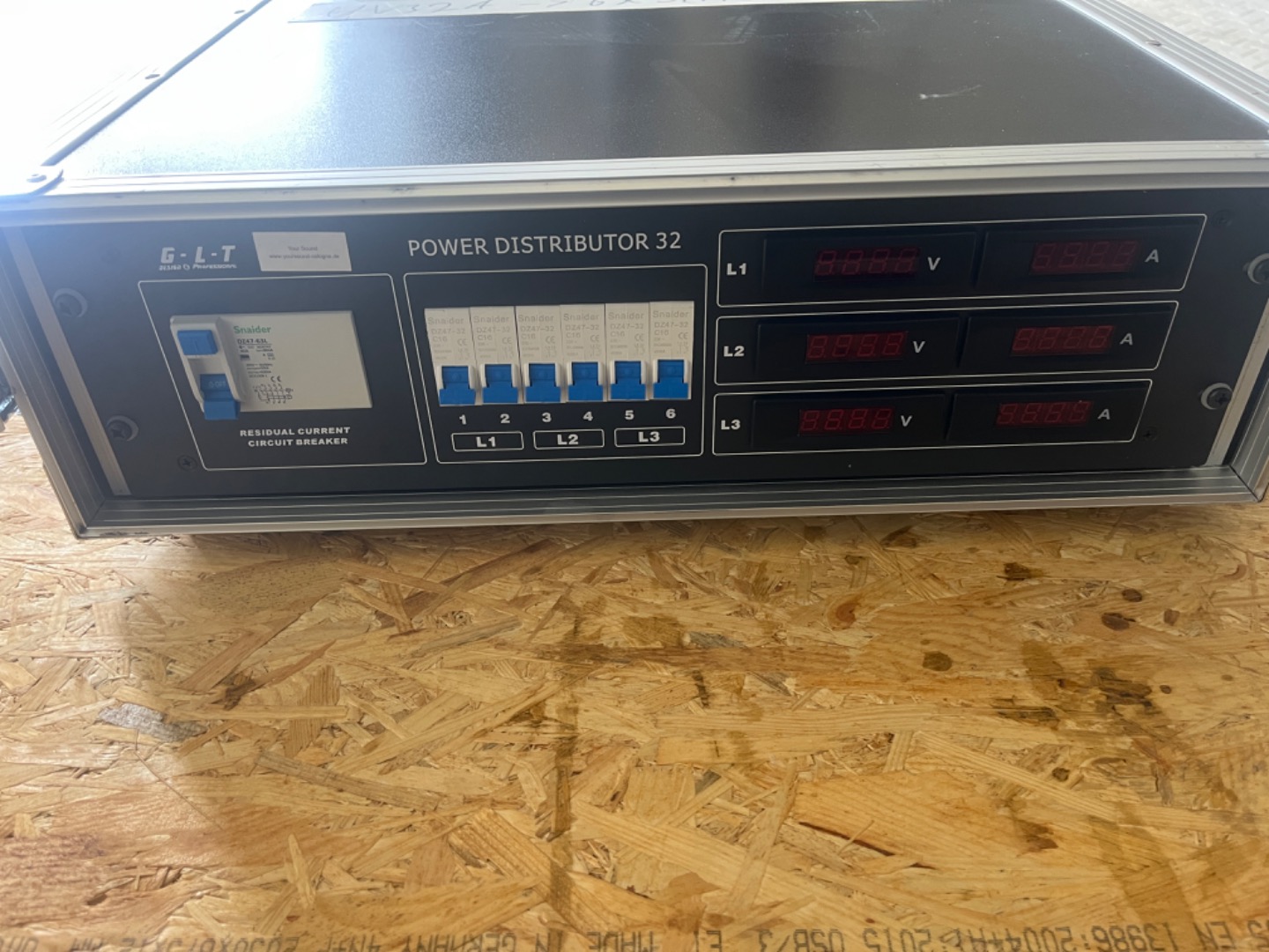 G-L-T 32A Stromverteiler auf 6x Schuko in einem 3HE Case.