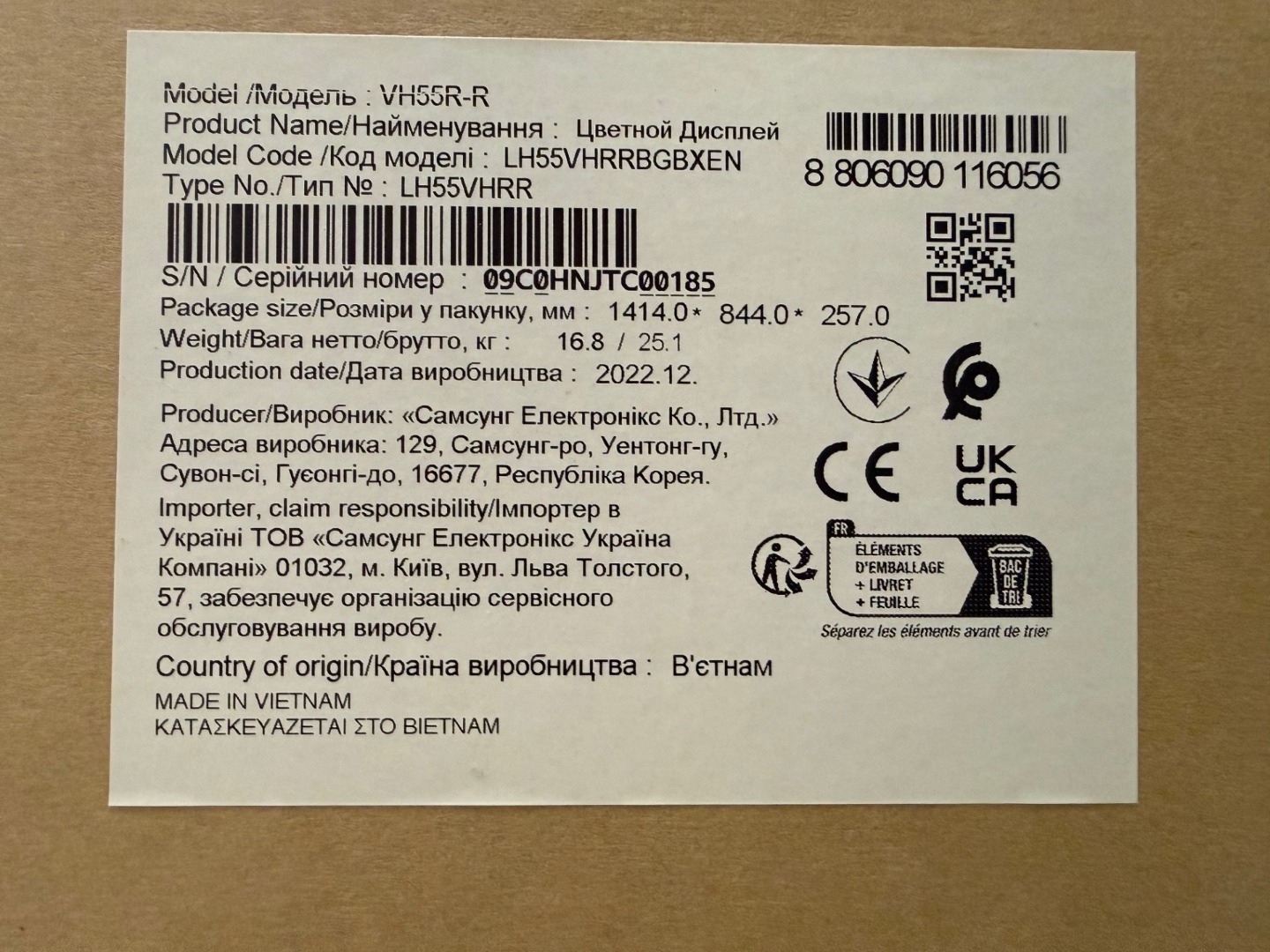 Wir verkaufen ein 55" VHR-R Series Videowall Display with Narrow Bezel von Samsung:
