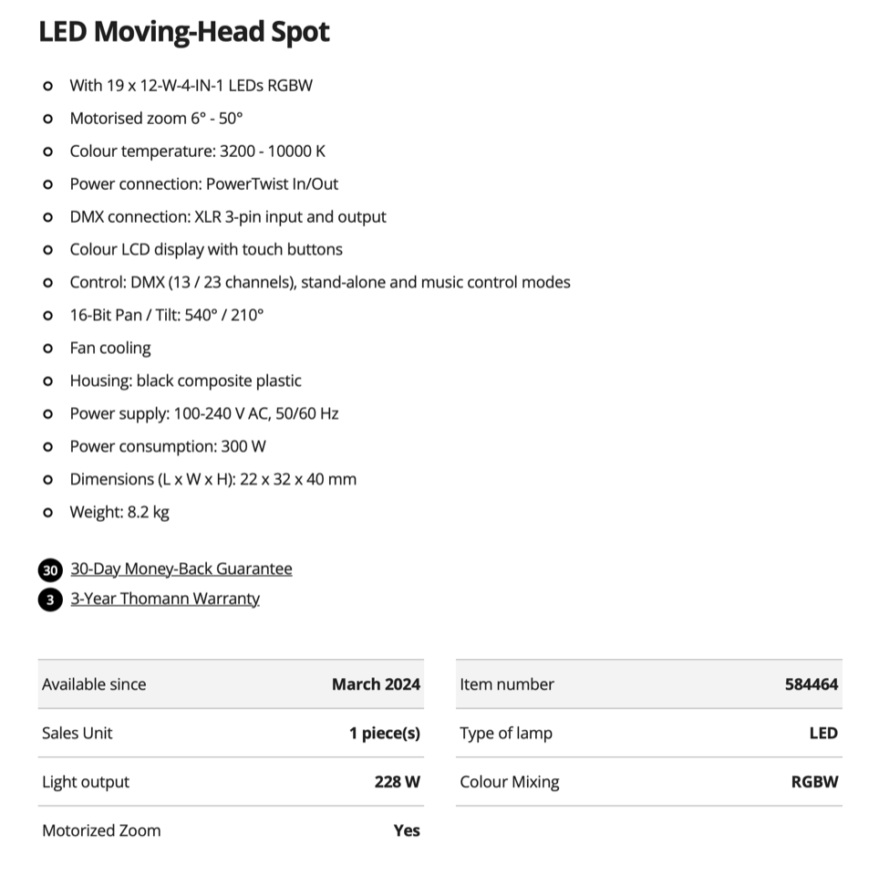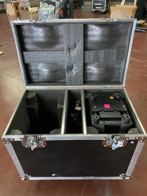 The only minor issue is that the fans are a little noisy, which makes them difficult to use for theatre when complete silence is required. However, they are perfect for lighting music or events. We sell them with Flight cases and hanging accessories. Total Price 1200€