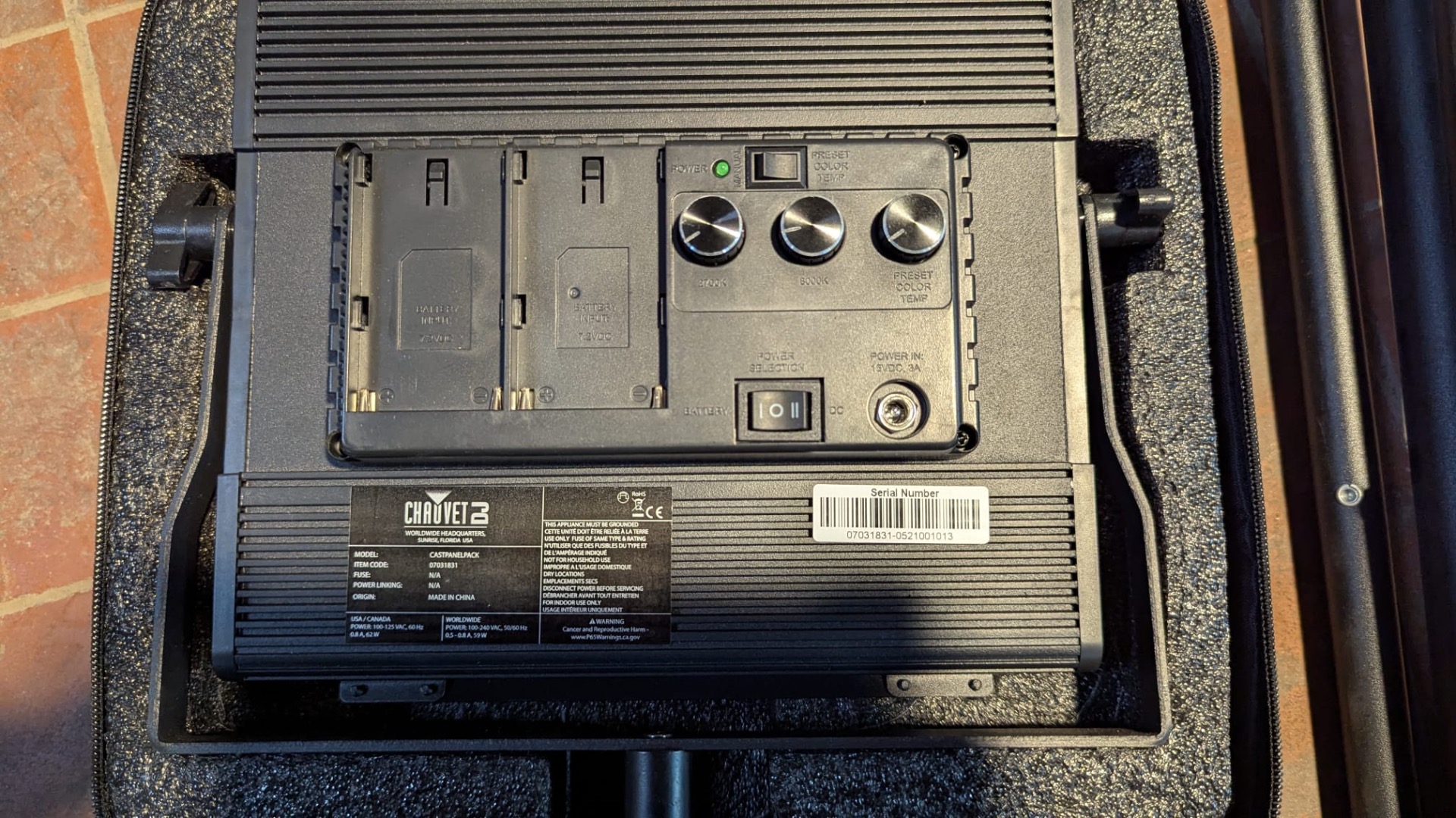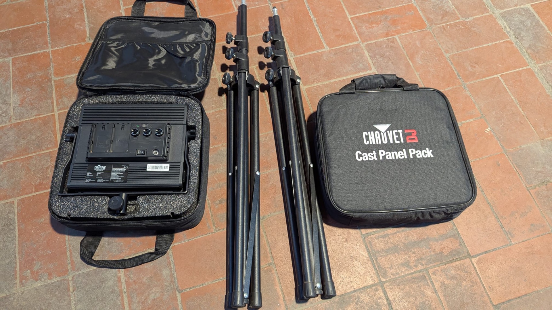 Set aus zwei Scheinwerfern, 2 Stativen, 2 Tragetaschen und Netzteilen