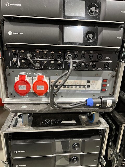 Includes 12 XLD281 speakers, 6 X-SUB subwoofers, 2 amplifier racks each equipped with 2 Dynacord TGX10 amplifiers, and 2 array frames, suitable for large-scale sound reinforcement applications.
