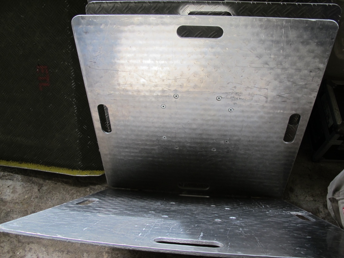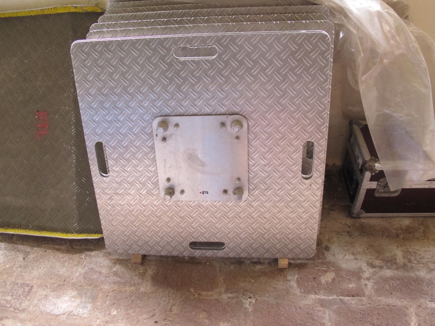Ich biete insgesamt 4 Stück gebrauchte Aluminium Riffelblech Bodenplatten an mit je einer BP1 Bodenplatte verschraubt.