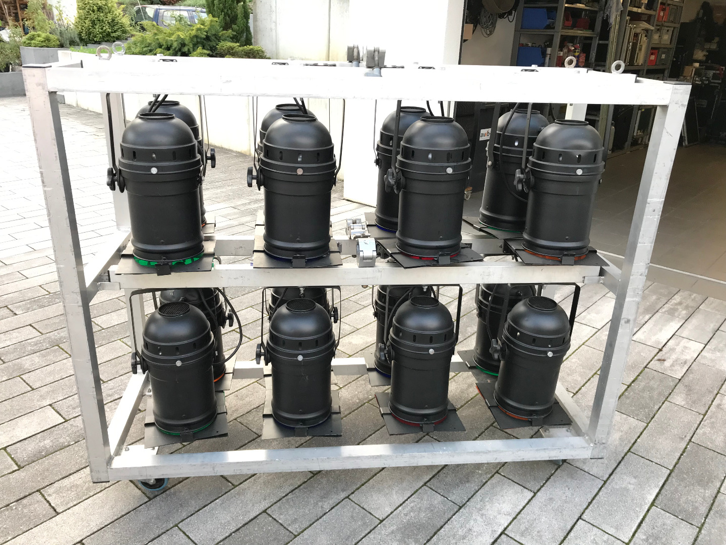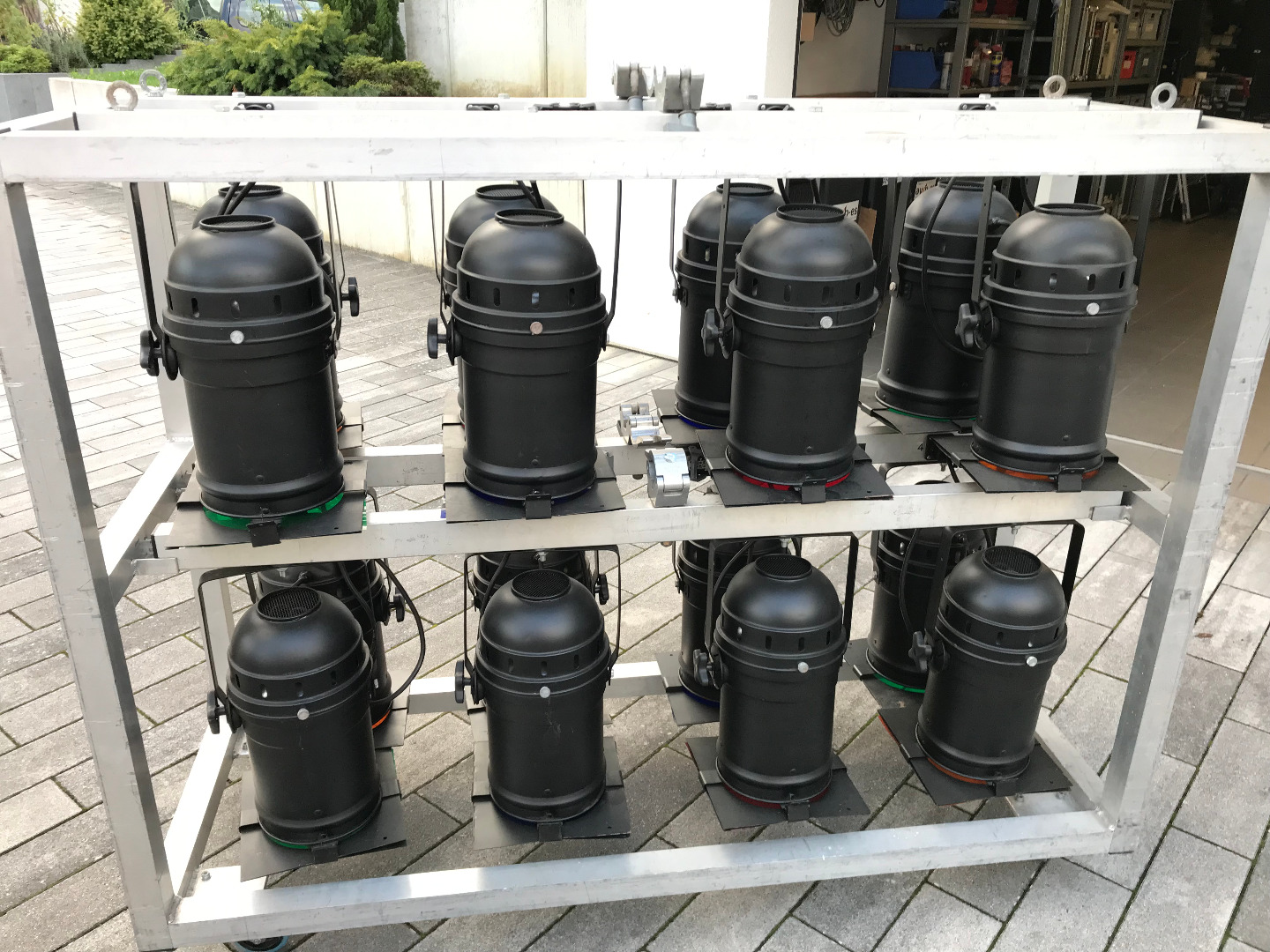 16x PAR 64 mit Farbfilterrahmen und Pressglasbrennern 1000W CP60 VNSP