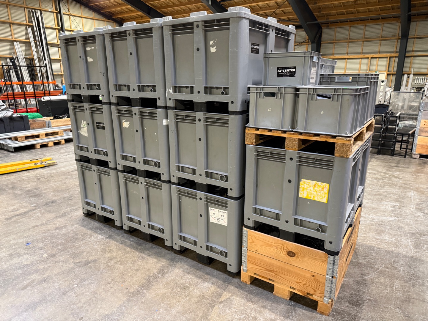 3 Pallets (3 containers stacked up) of 375kg. =1.125kg. total, pallet size 235x80x120cm
