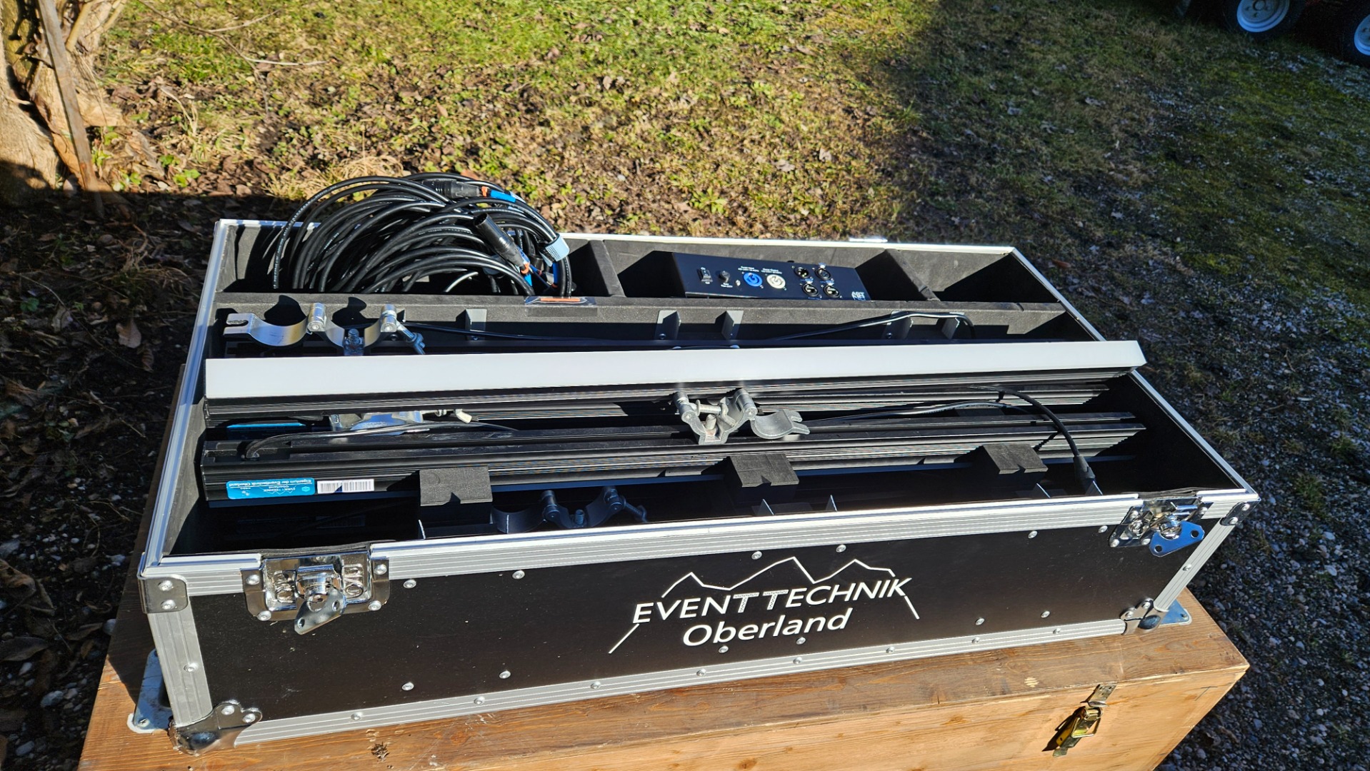 Zum Verkauf steht ein komplettes Showtec Octostrip-System, bestehend aus 8 LED-Streifen (100 cm) mit Controller, Zubehör und hochwertigem DAP-Flightcase mit passgenauem Inlay.