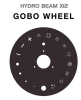 16 statische GOBOs + offen (4 GOBOs sind Strahlreduzierer)