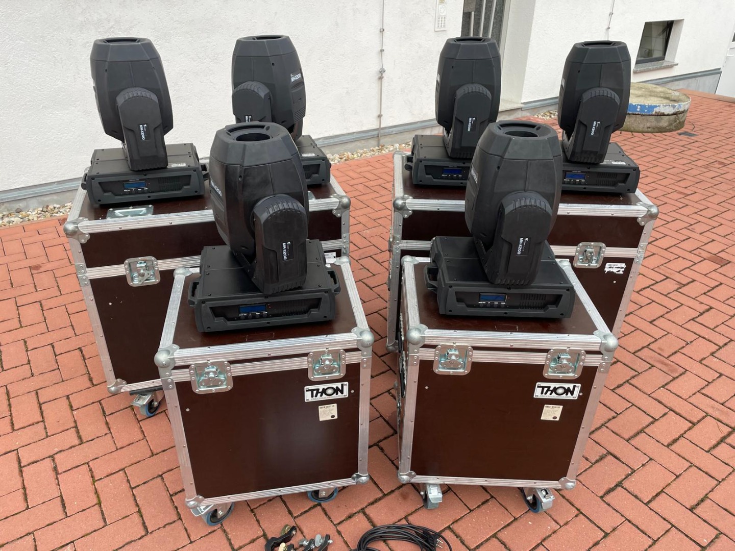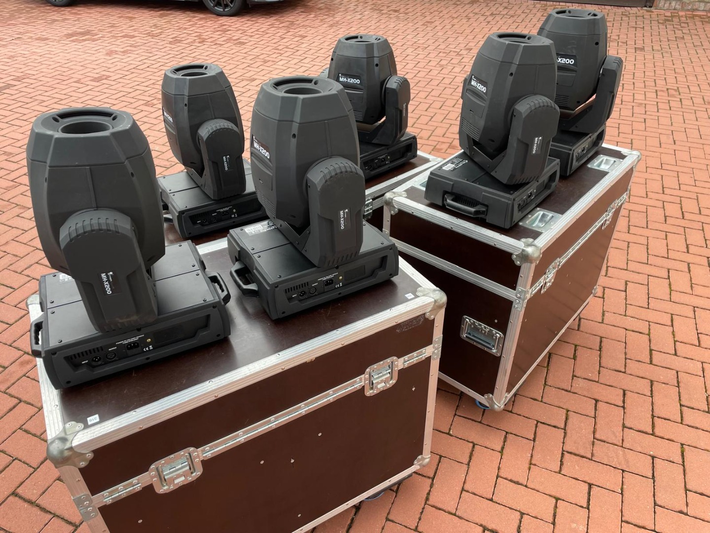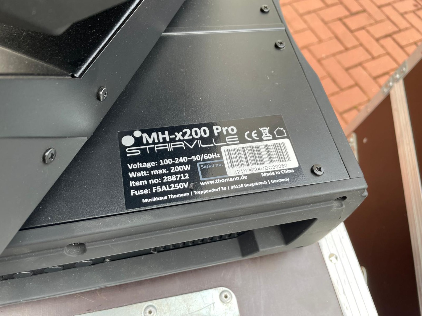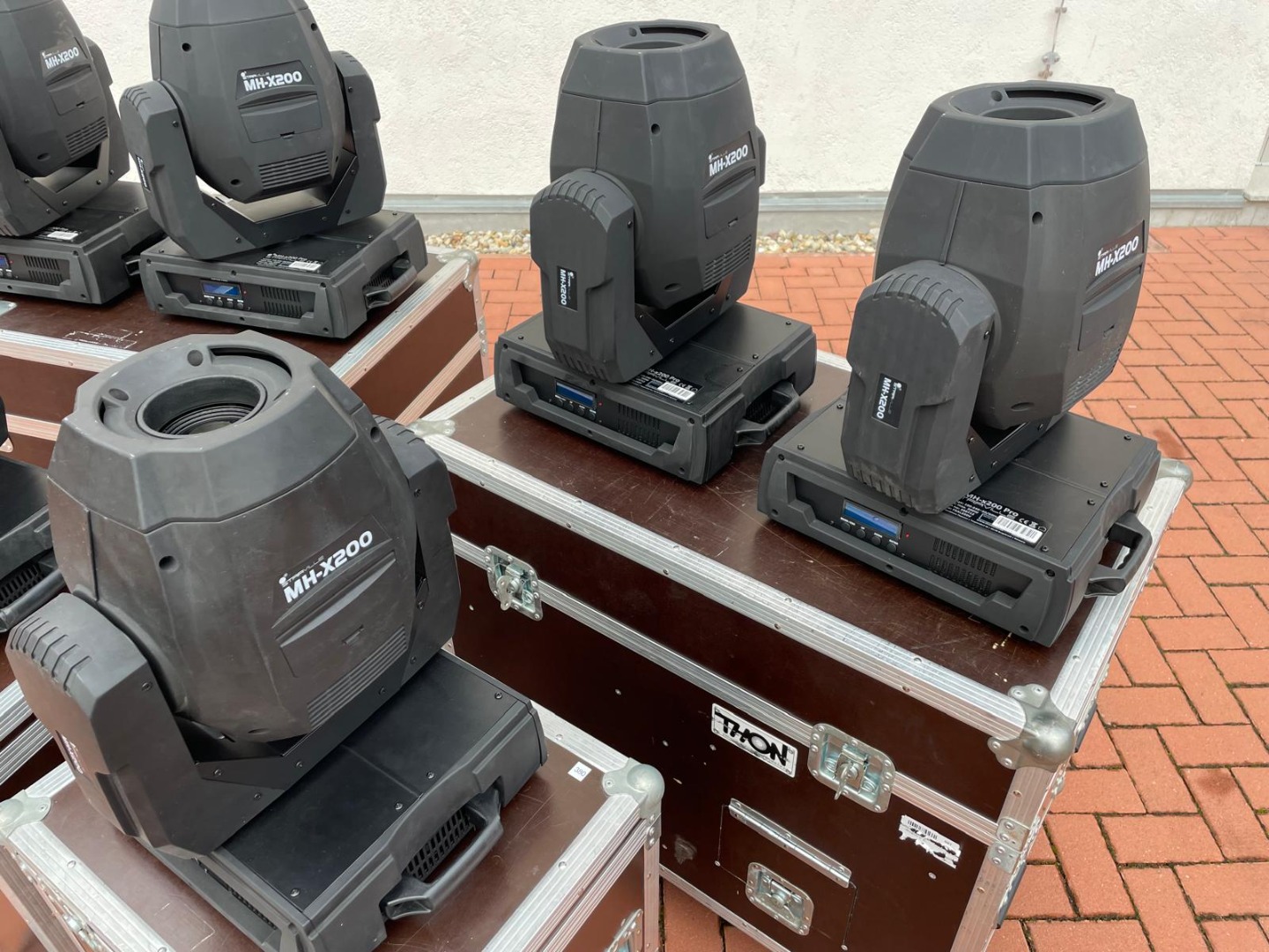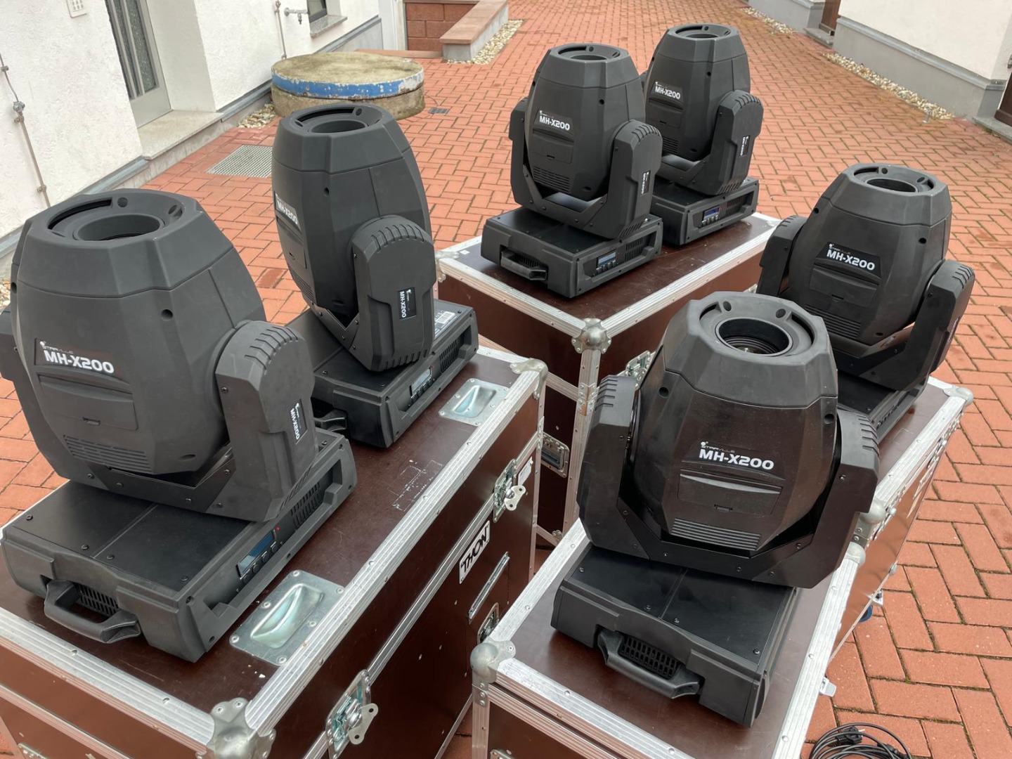 Zum Verkauf stehen sechs Moving Heads des Typs „Stairville MH-X200 Pro Spot“.