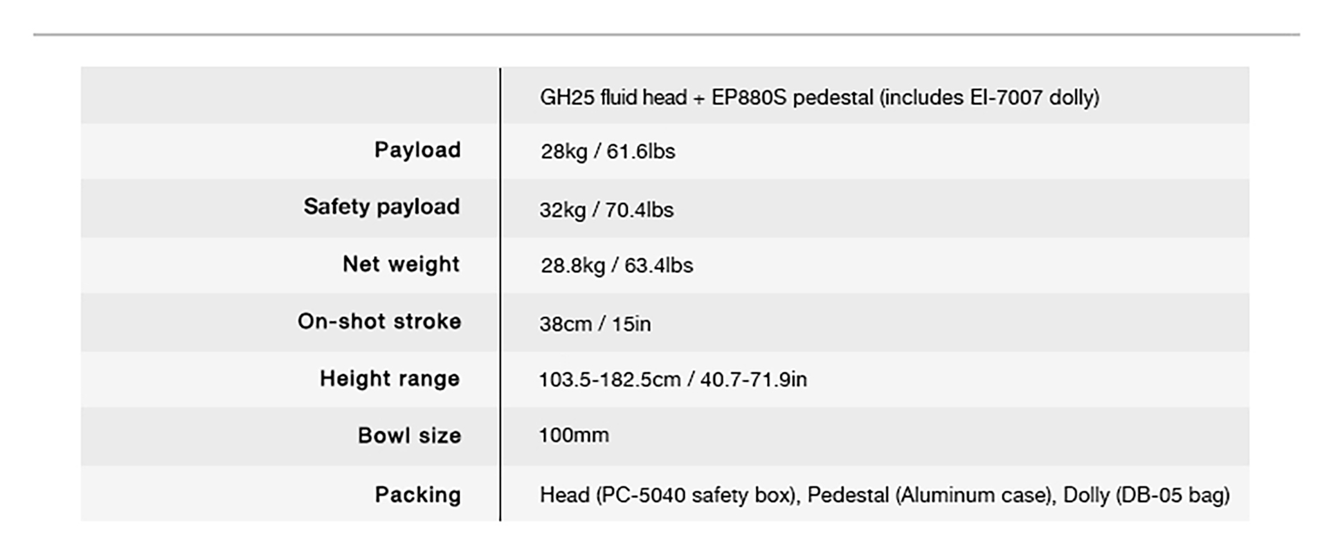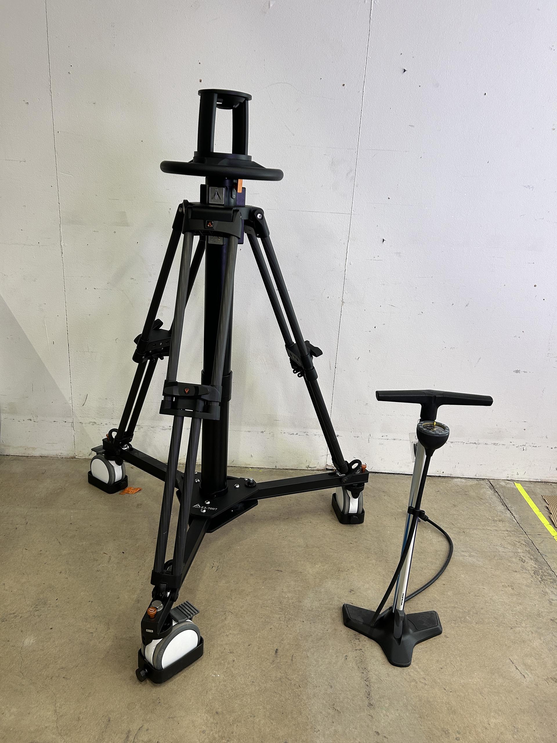This pneumatic pedestal kit is designed for studio and location broadcast environments, offering a maximum payload capacity of 28kg and adjustable working height from 102.5cm to 182.0cm, supporting flexible camera positioning for professional video production.