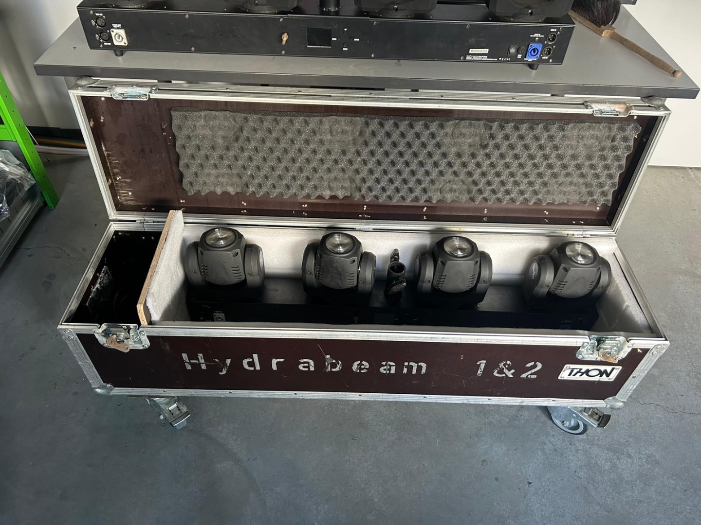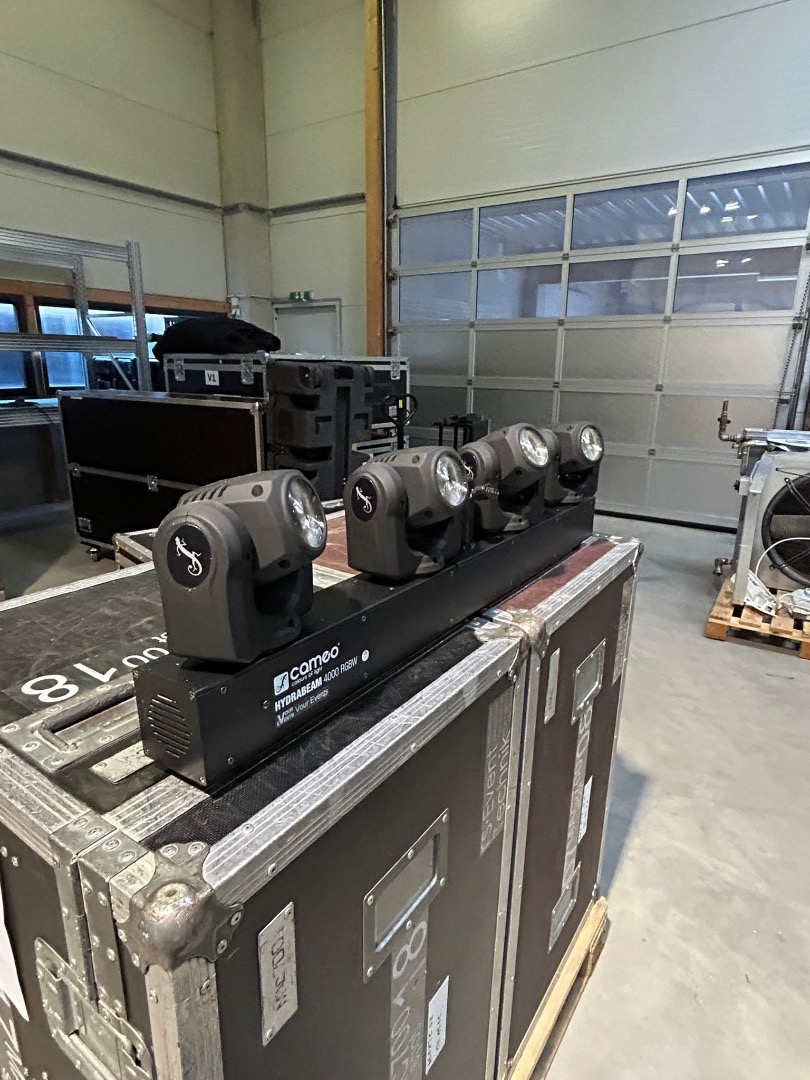 2x CAMEO HYDRABEAM 4000RGBW SET (three moving heads have broken covers, otherwise fully functional) including case, €450.00 net / SET