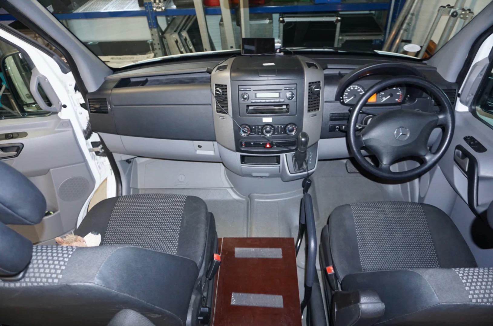 The vehicle, based on a Mercedes Sprinter and is air-conditioned.