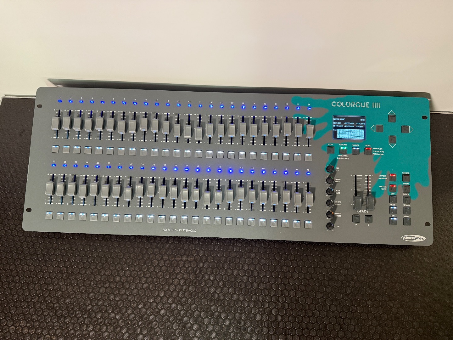 Der Showtec ColorCue 4 ist ein intelligenter 48-Fader LED-DMX-Controller zur einfachen Steuerung von 3 bis 6 farbigen LED-Scheinwerfern mit bis zu 288 DMX-Kanälen, geeignet für jeden Veranstaltungsort. Seine 6 Encoder ermöglichen eine schnelle Steuerung für verschiedene Farb-Engines, von 3-Farben-RGB bis 6-Farben-RGBWA-UV. Der ColorCue 4 verfügt über eine Speichertaste unter jedem Fader für die intelligente Steuerung Ihrer Farben, Chases und Benutzereinstellungen. Ausgestattet mit 2 intelligenten Master-Fadern und einem intuitiven LED-Display, können Sie ganz einfach 2 Sektionen steuern und Geräte an jeden der 48 verfügbaren Fader anschließen. Für den Wechsel von Farben und Effekten in einer Schleife können Sie 48 Chases mit maximal 99 Schritten pro Chase erstellen und abspielen. Der Chase kann im manuellen, Auto-Run- oder Sound-gesteuerten Modus gesteuert werden.