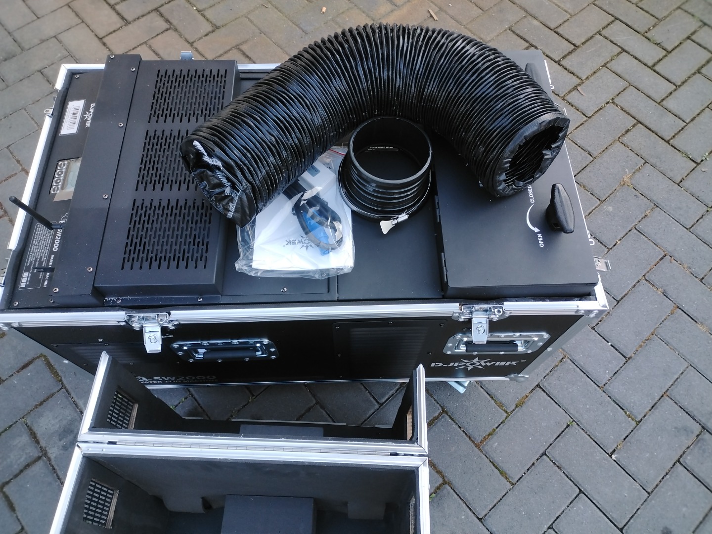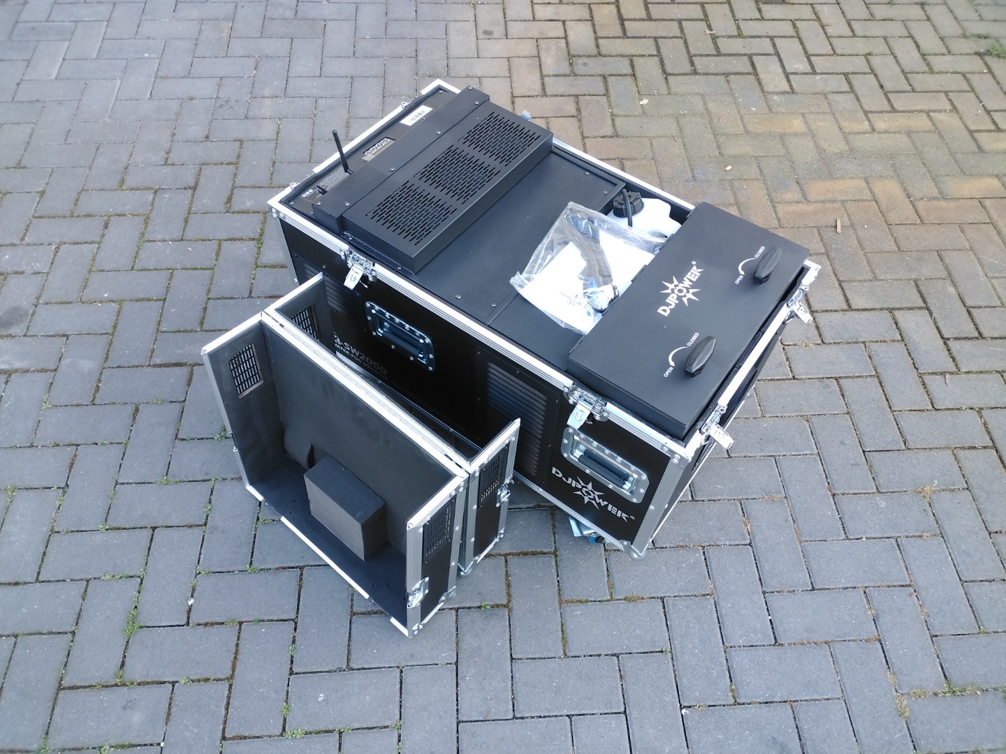 Zum Verkauf steht eine DJ Power X-SW2000 Bodennebelmaschine.