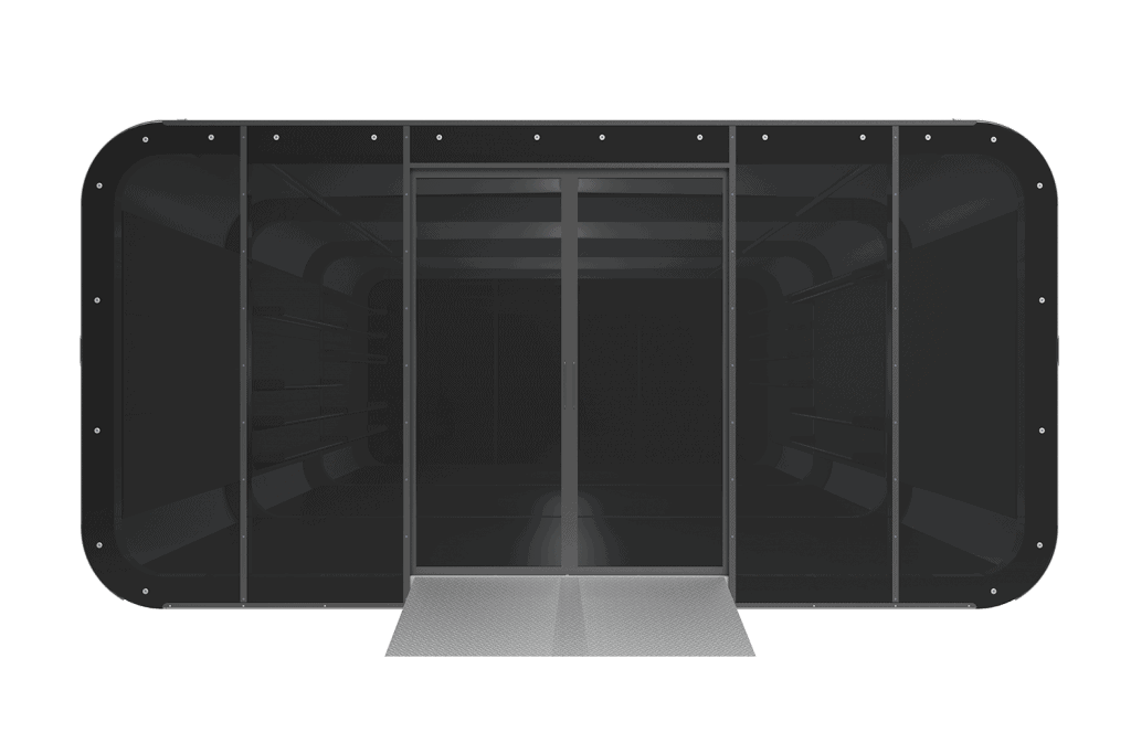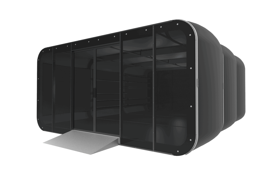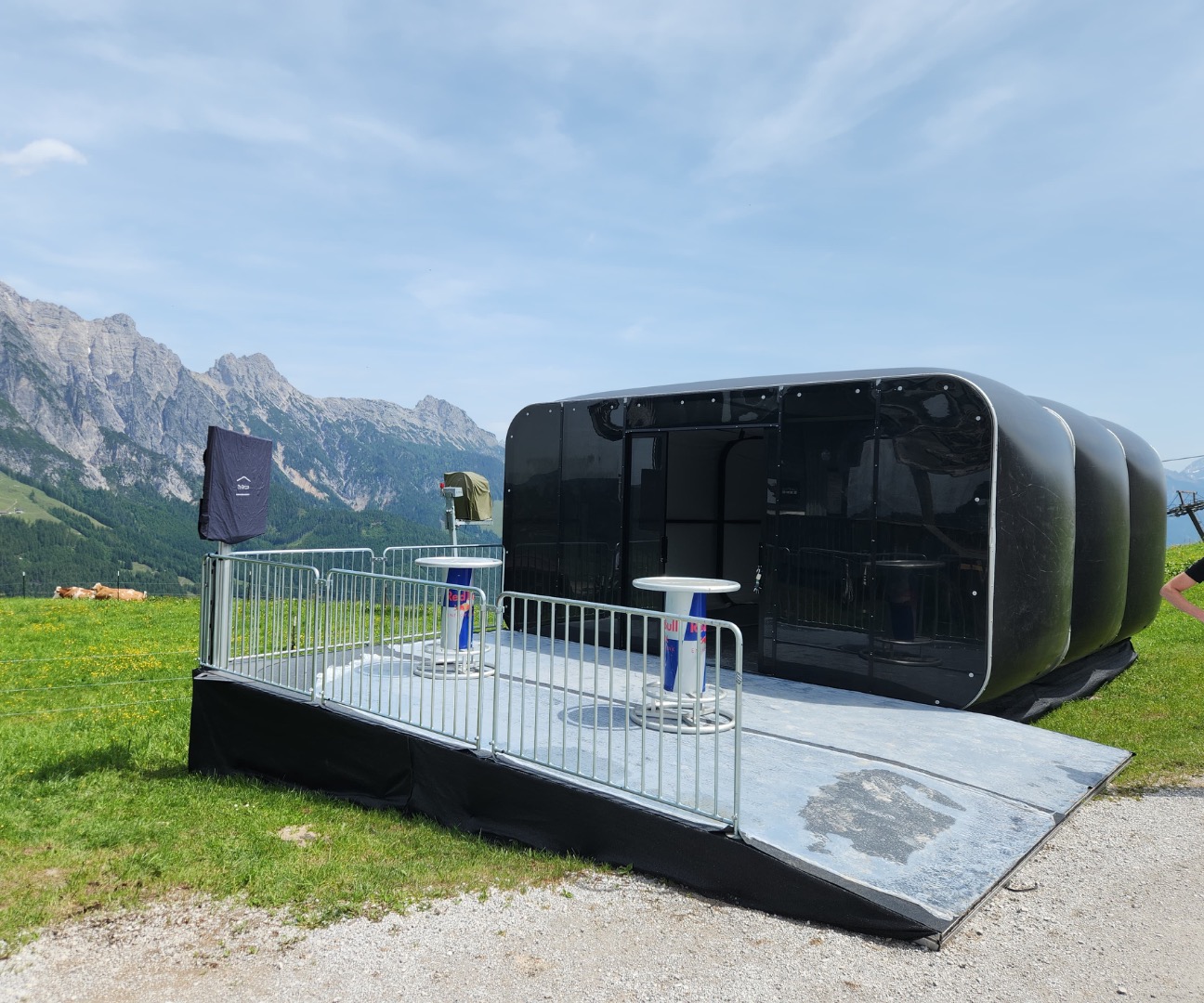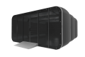 Bei Nutzung mehrerer Module kann die Glasfront flexibel positioniert und der Innenraum individuell gestaltet werden.