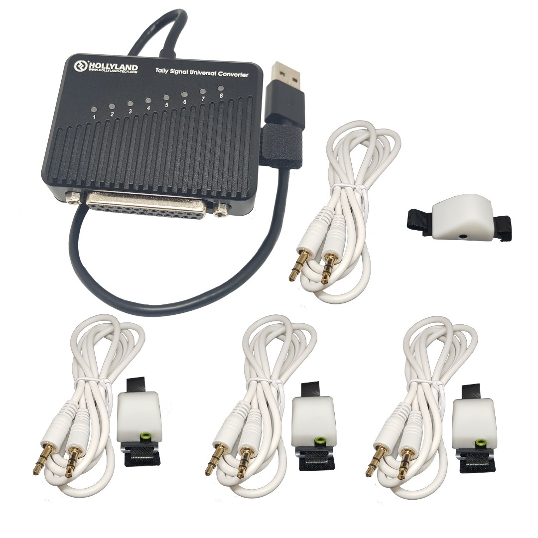 Die Hollyland Tally Box ist ein Interface für das Mars T1000-Intercomsystem zur Tally-Steuerung. Der Konverter wir über einen DB25-Stecker mit dem Videomischer verbunden.