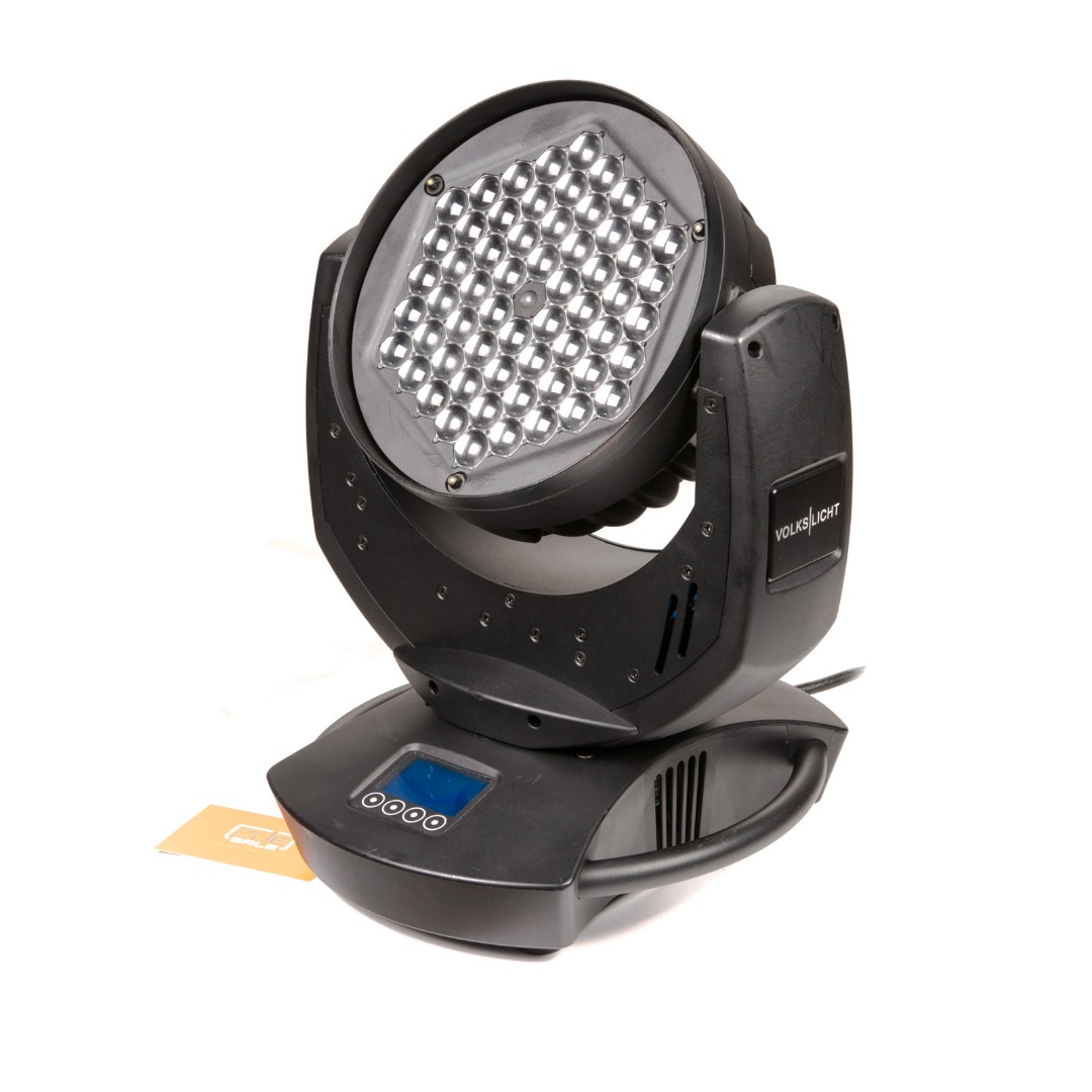 The fixture has a motorized zoom, changing its beam size from 10 to 26 degrees, whilst maintaining a strong output. Additionally the Volkslicht Zoom uses 60 Luxeon Rebel LED’s in an RGB configuration. Giving a broad mixing palette of colors from its primary saturates, through to the more subtle pastel shades.