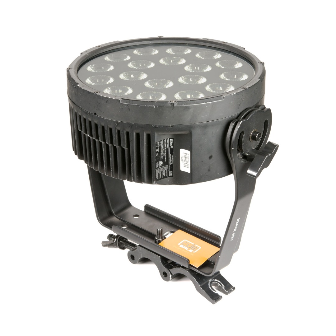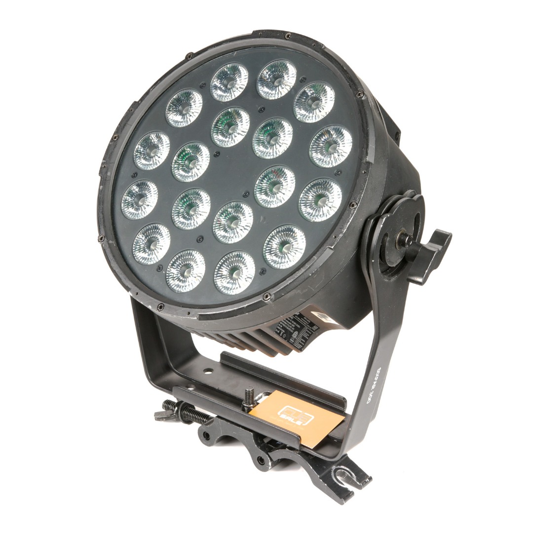 The IP65 rated SIXPAR 300IP™ features (18) 12W 6-IN-1 RGBAW+UV LEDs, 15° beam and 25° field angles, electronic strobe and dimming (0-100%), 5 variable dimming curve modes, dual yoke / floor stand, multiple unit power linking, RDM (remote device management), rugged die-cast aluminum exterior, flicker free operation for TV and FILM, and a multi-voltage universal auto switching power supply (110-250v).
