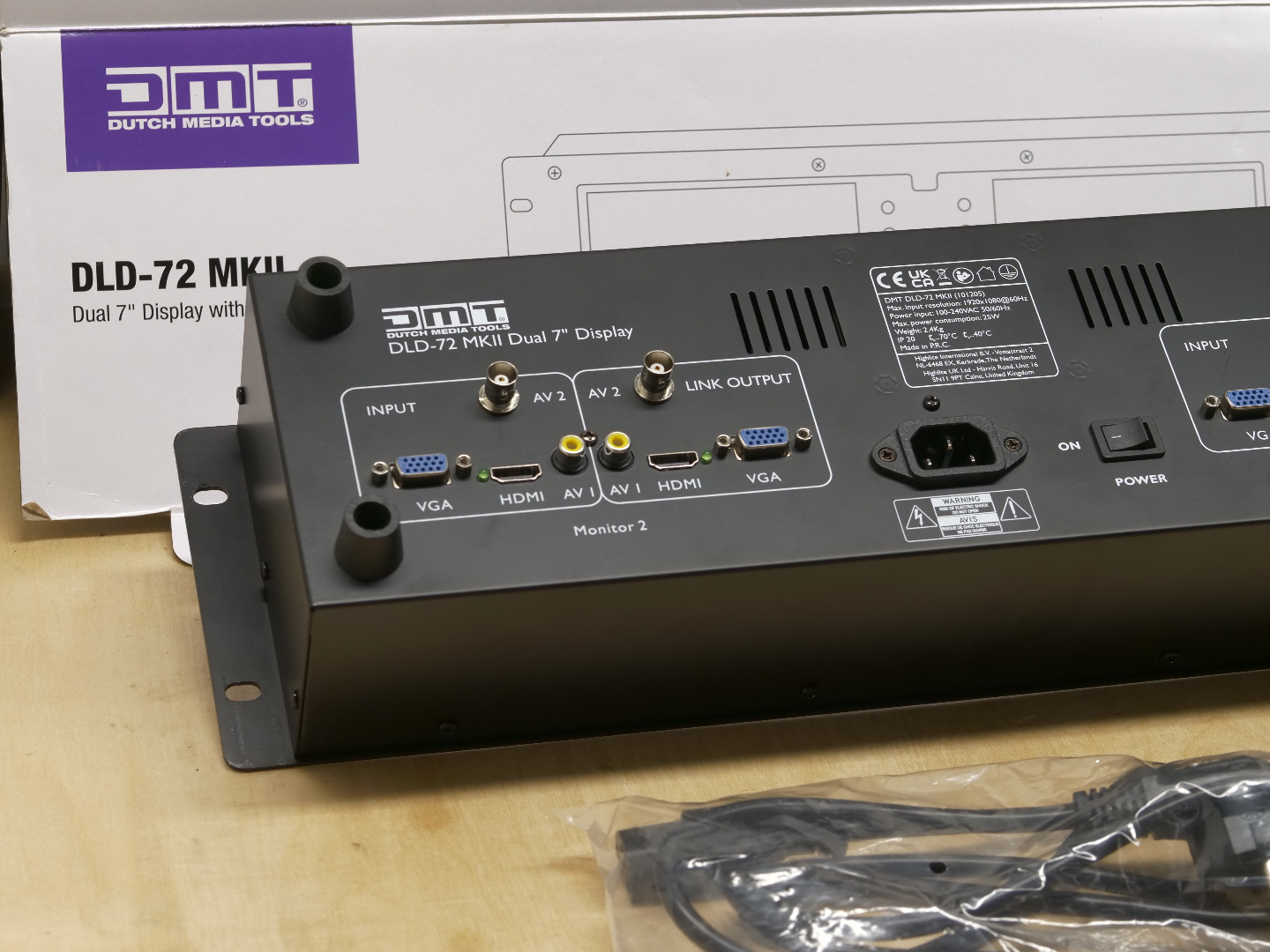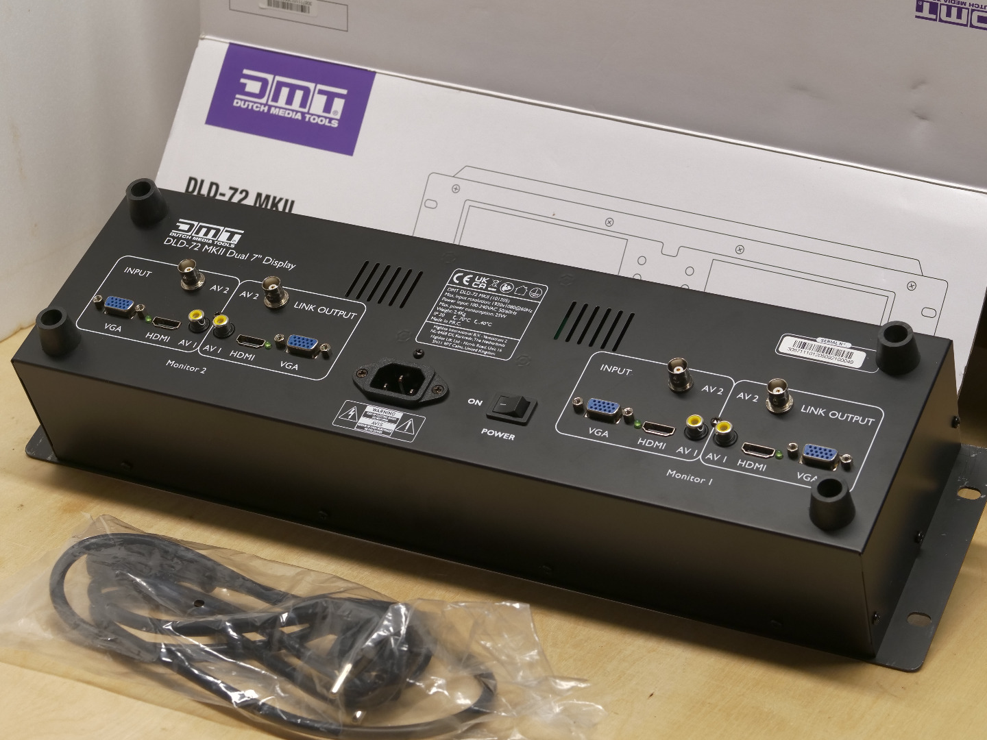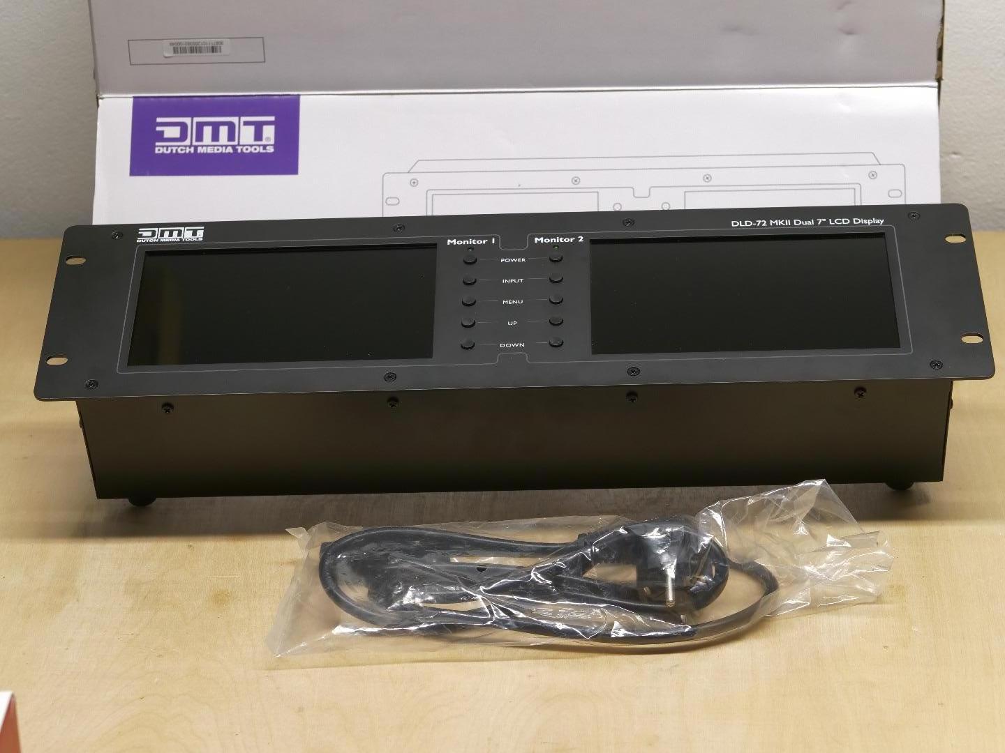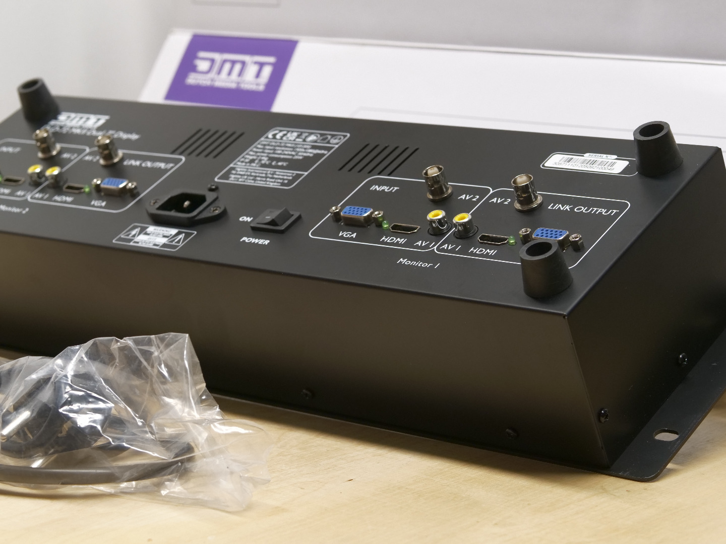 Der DMT DLD-72 MKII ist ein professioneller Doppelmonitor für den Einbau in ein Rack. Er ist für VGA-, CVBS- und HDMI-Quellen geeignet. Durch die Link-Ausgänge kann das Signal zu Projektoren o.ä. weiter geschliffen werden. Durch den integrierten Verteiler wird sichergestellt, dass das HDMI-Signal verlustfrei übertragen wird. Beide Bildschirme verfügen über eigene Menüs, mit denen Sie die Einstellungen für jeden Bildschirm einzeln vornehmen können.