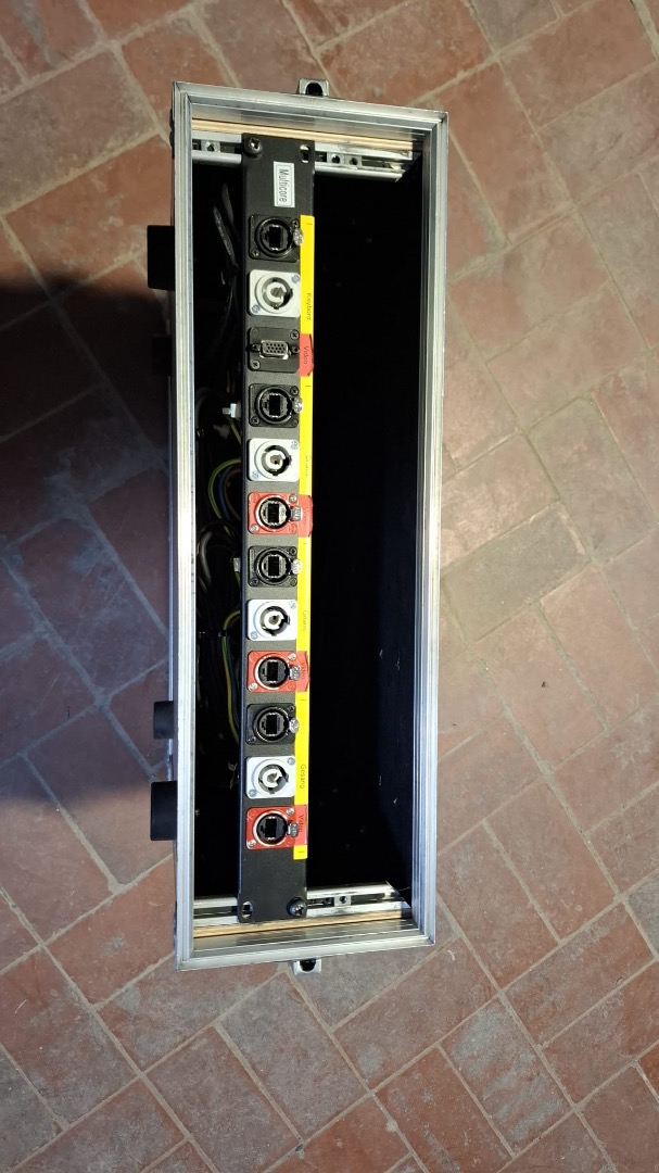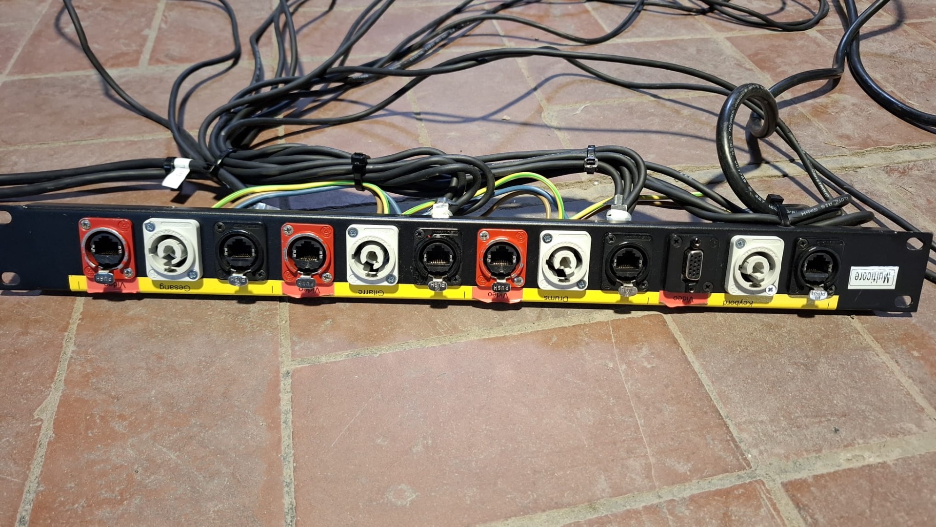 Bestehend aus einer 1 HE-Leiste mit Powercon Ausgängen sowie Video und 3x Signal